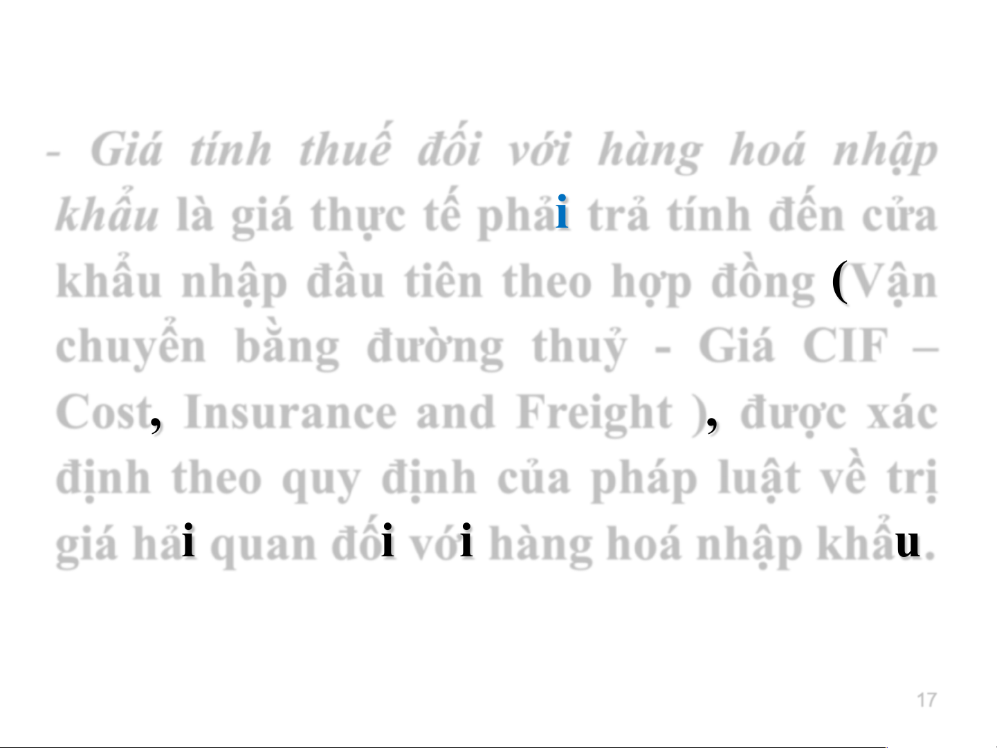 giá hải quan đối với hàng hoá nhập khẩu. 17