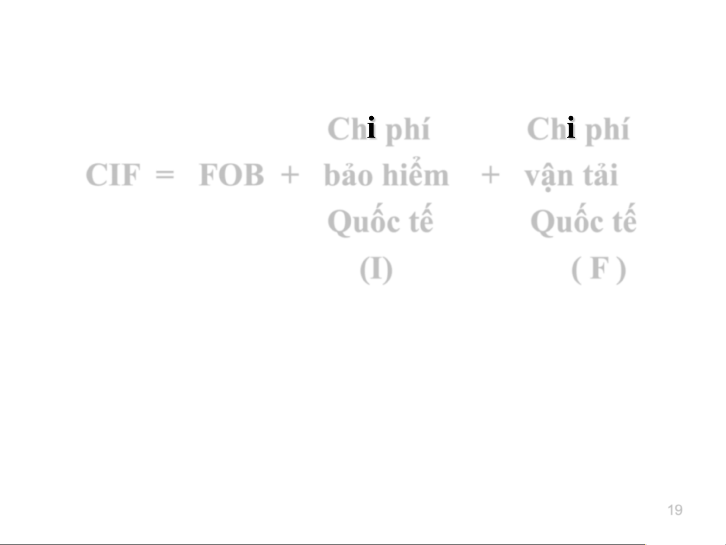 - Chi phí vận tải quốc tế (F) – Freight. 19