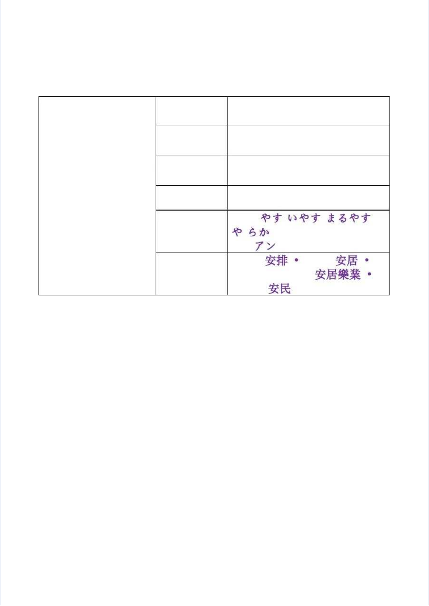 暗NGHĨAĨ VIỆITỆBkóBhnôgn t gố t i,ỏ ,t ốhi,ắ ,m c ác ờ, ,mk h…ông rõ , DẠNG KHÁC PH P IÊ I N Ê Â M àn Kun: くら く -い ÂM Â M KU K N U / N O / N O On: アン ア ám á m hạ h i ạ 暗害 暗 害 • ám á m hậ h n ậ 暗恨 暗 恨 • TỪ T Ừ GH G É H P É ám h iệu 暗号 暗 . Ch C ữ Á m 暗 n ghĩa l a à b à óng t ối, ,h ắc ám ắc . ám .Được ợ cấu c t hành t ừ b ộ N HẬT 日 l à m à ặt m trờ r i ờ , ,ch ữ Â M 音 l à âm à âm t hanh. .X ét v ề cấu ề t ạo, 暗 l à m à ộ m t ch ữ h ình t hanh có k ết cấu t rái r p hải v ới ớ 日 b ộ l àm àm n hiệm ệm v ụ b iểu n ghĩa v a à 音 có t ác d ác ụng b iểu t hị âm đọc. 日 với ớ v ai t rò r l à b à ộ t hủ t ạo ch ữ h án b iểu d iễn các nghĩa l a iên q uan đ ến án h sáng, ,t hời ờ t iết…k … ết h ợp ợ v ới ớ âm âm đ ọc củ c a 音 tạo t hành 暗 v ới ớ n ghĩa l a à tối, ,t hiếu ánh s áng n hư u á m 幽暗 n ghĩa l a à m à ờ m ờ t ối. 暗 cũng đ ược ợ s c ử d ụng đ ể ch ể ỉ v iệc làm àm g ì đ ó kín đ áo, không m inh b ạch n hư t ro r ng t ừ ám h iệu 暗號 h iệu n gầm (k ( hông ch o n gười ờ n goài cu ộc b c iết), ) ,“ ám s ự ” 暗事 v iệc m ệc ờ m ờ ám . ám 10 N h N óm b iên s o s ạn: https: s //ww w w w . w f . acebook.co . m/vuihocchuhan/ HÁ H N Á N VI V Ệ I T Ệ An A , ,Y ên Y NGHĨA Ĩ VIỆ I T Ệ An A t oàn, ,l ành, ,y ên l òng, ,d ự định,… , 安DẠNG KHÁC PH P IÊ I N Ê Â M ān Kun: やす や -いや い す や -まる ま や る す や ÂM Â M KU K N U / N O / N O や-らか ら On: アン ア an b ài 安排 安 排 • an cư 安居 安 居 • TỪ T Ừ GH G É H P É an cư cư l ạc n c ghiệp 安居 安 樂 居 業 樂 業 • an a n dâ d n â 安民 安 . Ch C ữ ữ A n A ( 安) p hía t a rên l à b à ộ M i M ên ( 宀), ,p hía d a ướ ư i ớ l à b à ộ N ữ N ữ ( 女). .B ộ B n ữ ữ m ô tả t ả ư ư t hế y ế ểu đ iệu n ữ ữ t ính củ a n a gườ ư i ờ co n g ái t hời ờ x ưa, ư a, ch ân h ơi ơ k hụy x uống, mặt n ghiêng, ,h ai t ay đ ể v ể ề một b ên h ông. .M i M ên n ghĩa l a à mái n hà, à, t rông giống cái m ái ch e. e. N g N ườ ư i ờ p hụ n ữ ữ ở ở t rong n hà ch à ính l à ch à ỉ ch ữ ữ “A n “A ”. N g N ày n ay n gườ ư i ờ t a h a ay g iải n ghĩa ch a ữ ữ “A n “A ” v ” ới ớ h àm ý l à n à gườ ư i ờ p hụ n ữ ữ m à ở ở t r “A o n n ” gk n h h ô à n t à g h ì h r ề ất gi an ới ớ t h oàn ạn , ở , s t ẽ sầnđ ẽ gư ợ ưn c ợghn c ĩ g a ư đ ờ ưó i ờ. đ Nàn g ư ô ờ n i g x ch ưa ư e q ch e u ở an . ở .nT i u T y ệm n r hi ằn ên g, , ch ng ữ ườ ư i ờ p hụ n ữ ữ cần đ ảm đ ươ ư n ơ g l o l iệu v iệc n ệc hà, à, đ ể n ể gườ ư i ờ đ àn ô ng y ên t âm r a n a goài làm v iệc l ệc ớn ớ . .Đ i Đ ều n ày k hông có ý h ạ t ạ hấp n gườ ư i ờ p hụ n ữ, ữ ,m à ch à ính l à ý à rằng: N h N à p à hải y ên t hì n ướ ư c ớ m c ới ớ y ên. .M ái M n hà có à n gườ ư i ờ p hụ n ữ ữ ch ăm n om thì m ới ớ đ ượ ư c ợ an c đ ịnh. .Đ ó Đ ch ính l à ch à ữ ữ “A n “A ”. 11 N h N óm b iên s o s ạn: https: s //ww w w w . w f . acebook.co . m/vuihocchuhan/ HÁ H N Á N VI V Ệ I T Ệ Áp Á NGHĨA Ĩ VIỆ I T Ệ