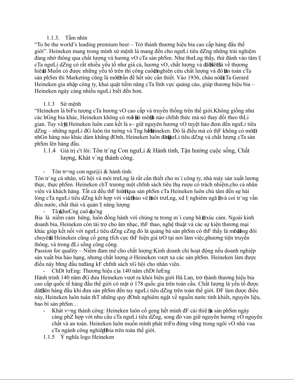 cách tiếp cận thống nhất toàn cầu. Coi tr`ng bản sec cTa Heineken Việt Nam, nhưng đồng thLi