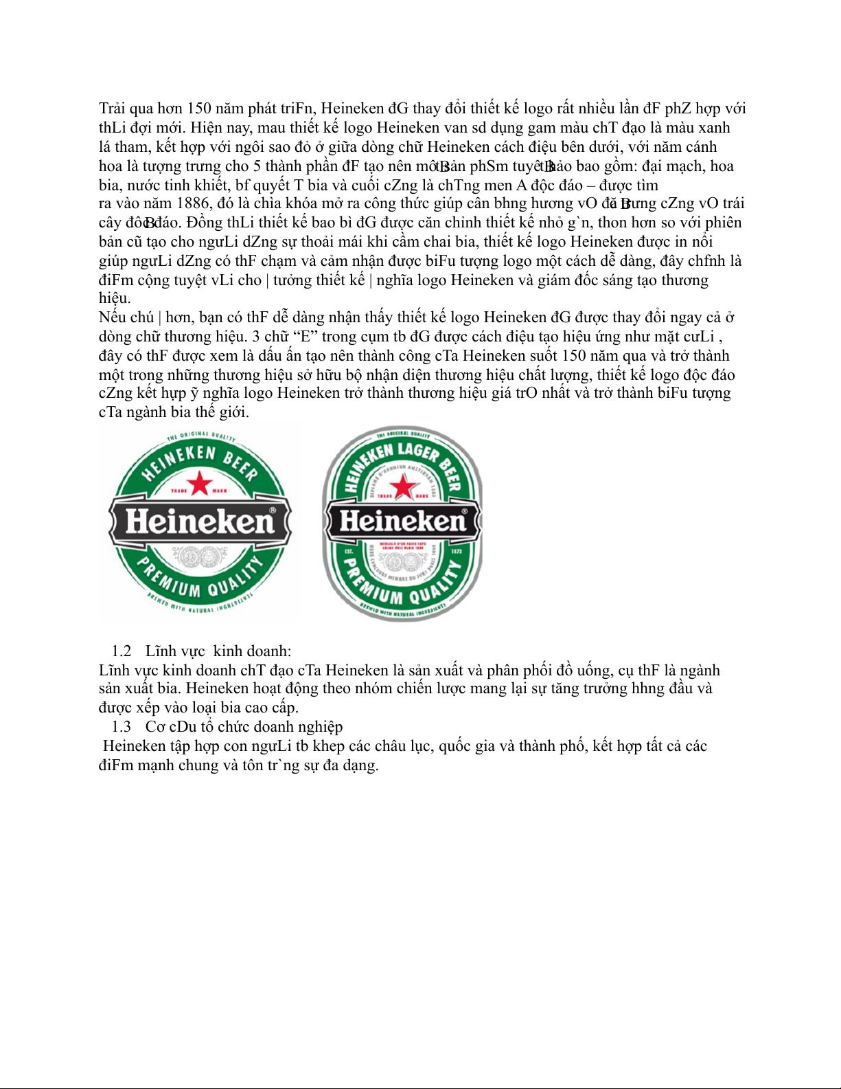 cZng kết hựp ỹ nghĩa logo Heineken trở thành thương hiệu giá trO nhất và trở thành biFu tượng cTa ngành bia thế giới. 1.2 Lĩnh vực kinh doanh: