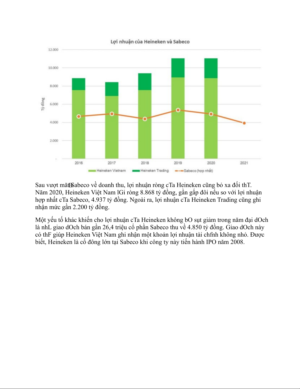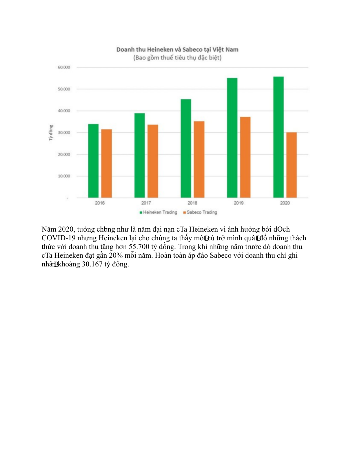 cTa Heineken đạt gần 20% mỗi năm. Hoàn toàn áp đảo Sabeco với doanh thu chỉ ghi nhâ B