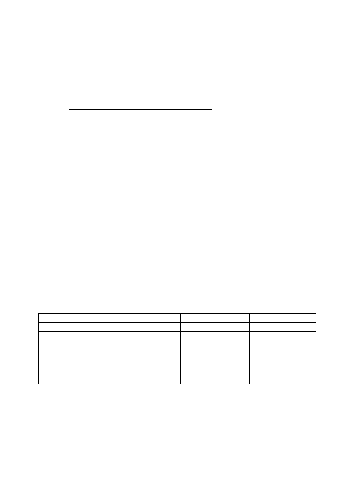 6. Đánh giá mức độ đóng góp của các thành viên STT Họ tên Mã số sinh viên % đóng góp 1 Nguyễn Hồng Quốc Khánh 423H0100 100% 2 Võ Thị Đan Nhi 22300090 100% 3 Ôn Gia Bảo 223D0003 100% 4 Lê Nguyễn Hồng Quyên 223H0137 100% 5 Nguyễn Thị Như Khuyên 723H0381 100% 6 Lê Nguyễn Khánh Ngọc 223H0101 100% 7 Ngô Thùy Linh 223H0067 100%