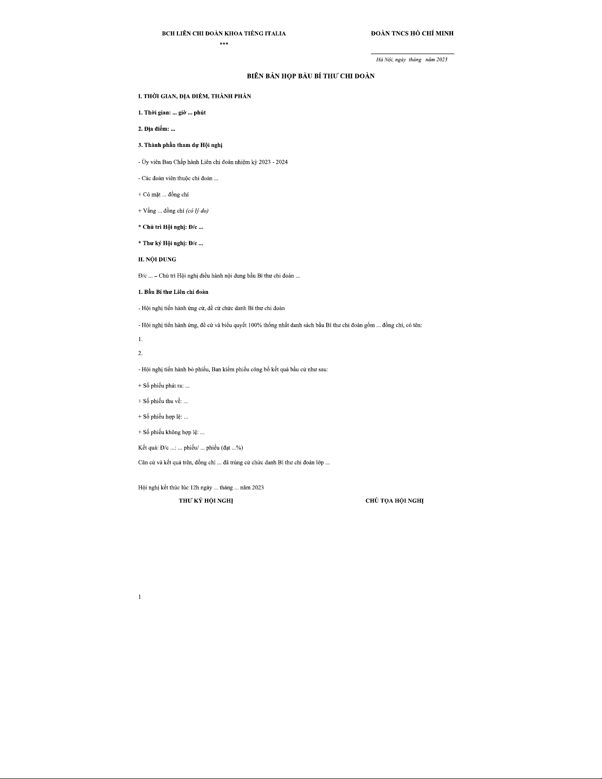 Biên Bản Họp Bầu Bí Thư Chi Đoàn Khoa Tiếng Italia 2023