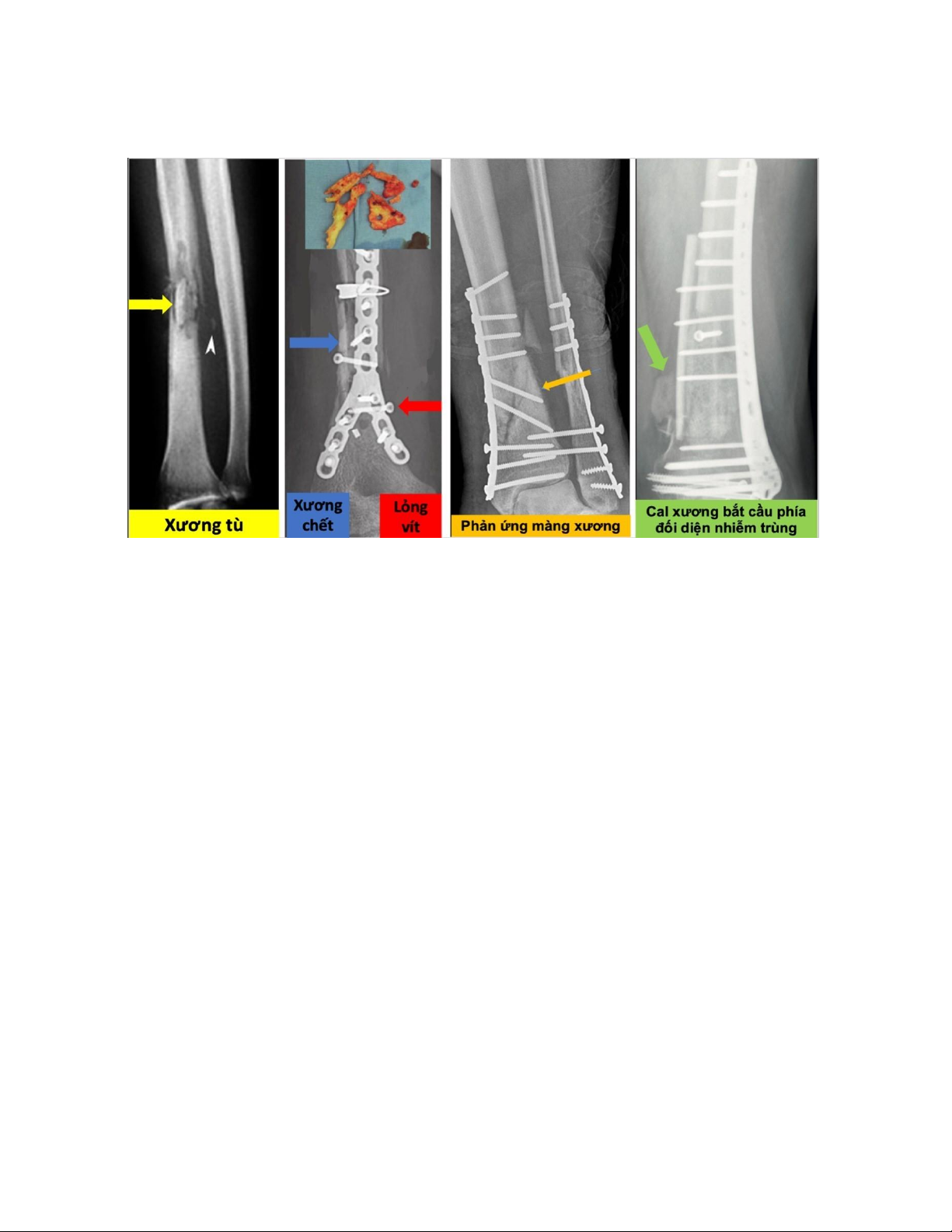 sưng, khe gãy rộng ra do sự tiêu xương, lỏng vít. Sau đó là các dấu hiệu hủy xương,