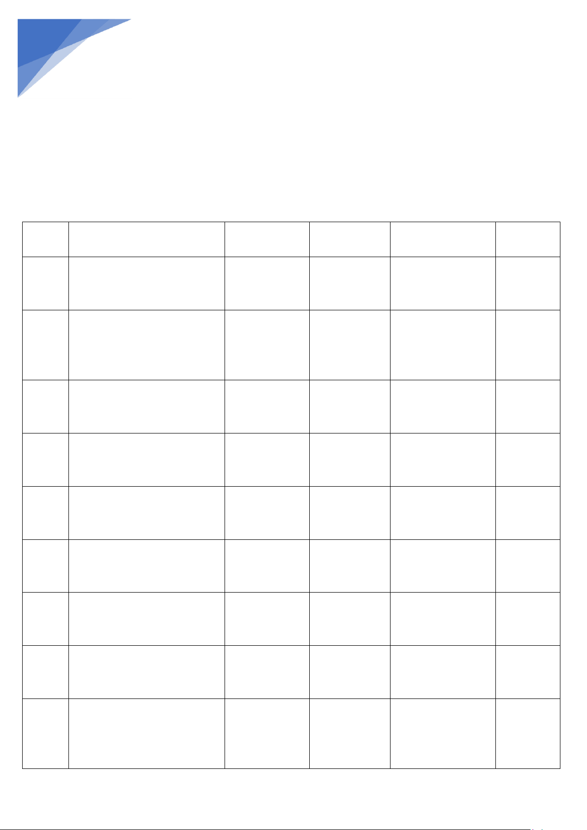 Nguyễn Bảo Châu In Nhụ Tha 23D250038 9 Tổng hợp Hoàn thành tốt word nhiệm vụ 92 Nguyễn Tiến Thành 23D250039 Hoàn thành tốt 9.2 Nội dung nhiệm vụ chương 2, thuyết trình 93 Đinh Thu Thảo 23D110046 9 Nội dung Hoàn thành tốt chương 3 nhiệm vụ 94 Đỗ Thu Thảo 23D110100 9 Nội dung Hoàn thành tốt chương 4 nhiệm vụ 95 Hoàng Phương Thảo 23D110158 9.3 Nội dung Hoàn thành tốt chương 1 nhiệm vụ 96 Kiều Phương Thảo 23D250040 9 Nội dung Hoàn thành tốt chương 3 nhiệm vụ 97 Lê Phương Thảo 23D250041 9 Nội dung Hoàn thành tốt chương 4 nhiệm vụ 98 Nguyễn Phương Thảo 23D110047 9 Làm Hoàn thành tốt Powerpoint nhiệm vụ 99 Nguyễn Phương Thảo 23D110101 Hoàn thành tốt 9.2 Nội dung nhiệm vụ chương 1, thuyết trình 3 lOMoAR cPSD| 45470368 100 Trần Phương Thảo 23D110159 Làm Hoàn thành tốt 9.5 Powerpoint nhiệm vụ ( Nhóm trưởng) LỜI MỞ ĐẦU