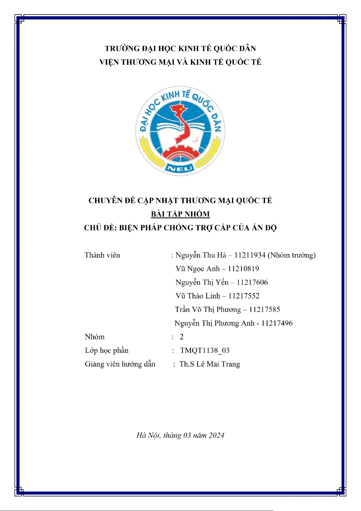 thương mại quốc tế nhóm em đã chọn đề tài “Biện pháp chống trợ cấp của Ấn Độ” để phân tích.