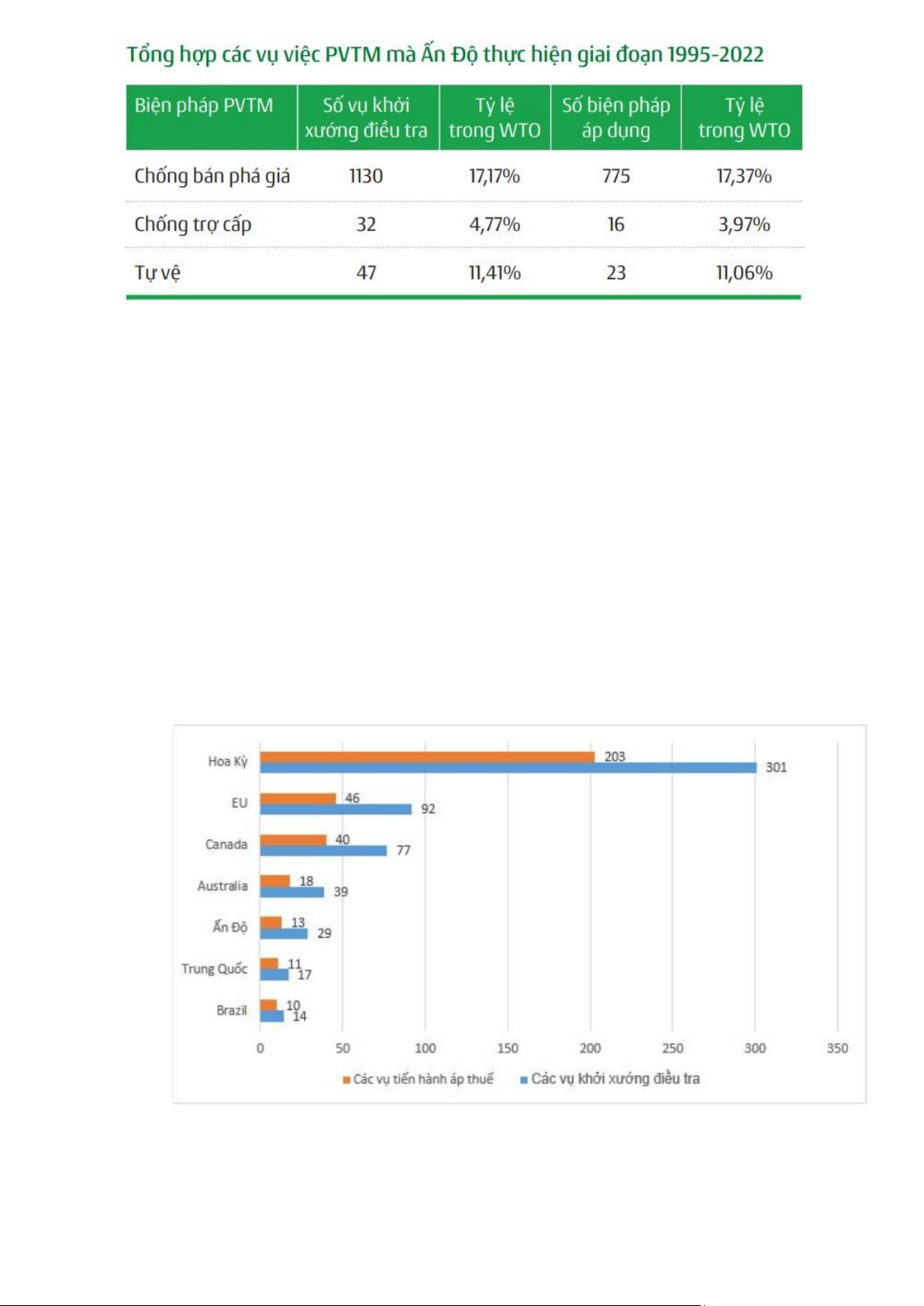 xướng và 46 vụ áp thuế, Canada (77 vụ khởi xướng, 40 vụ áp thuế)… Có thể thấy rằng,