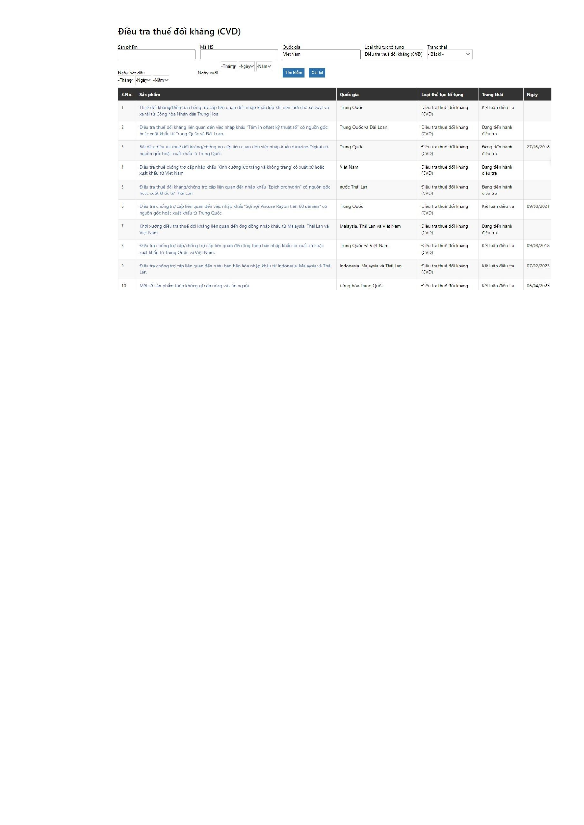 trong khi Thái Lan và Indonesia chiếm 10%. 3.1.1.3. Các sản phẩm bị áp dụng biện pháp CTC