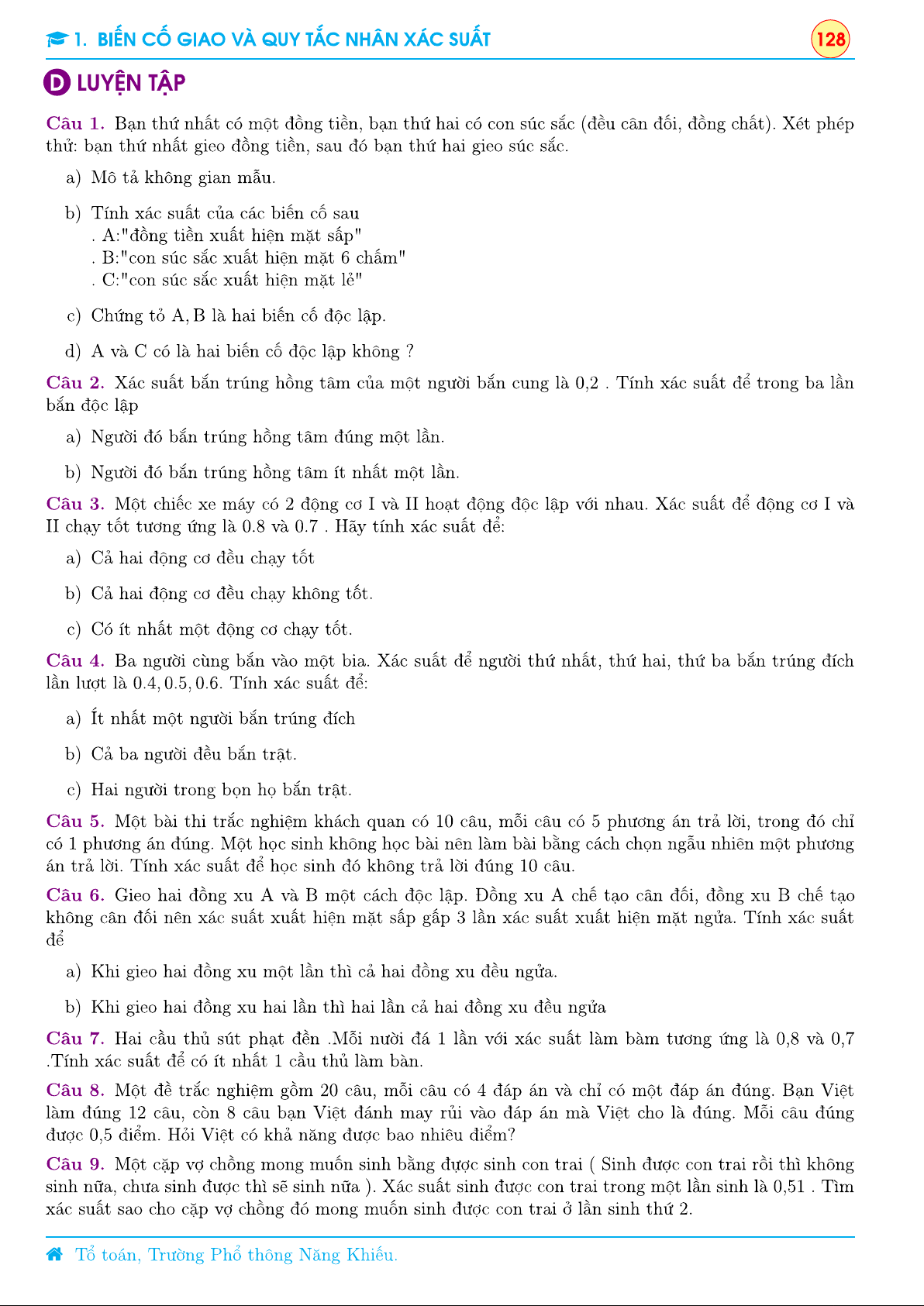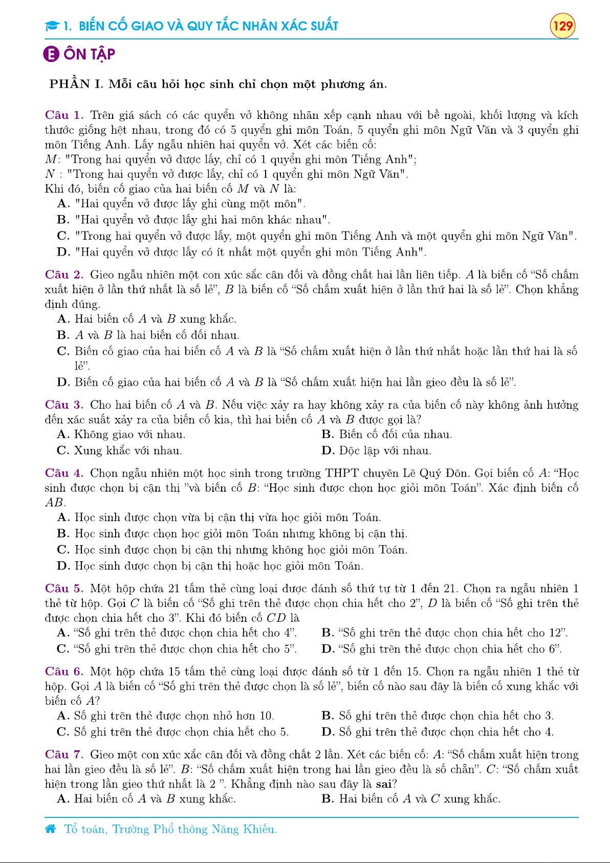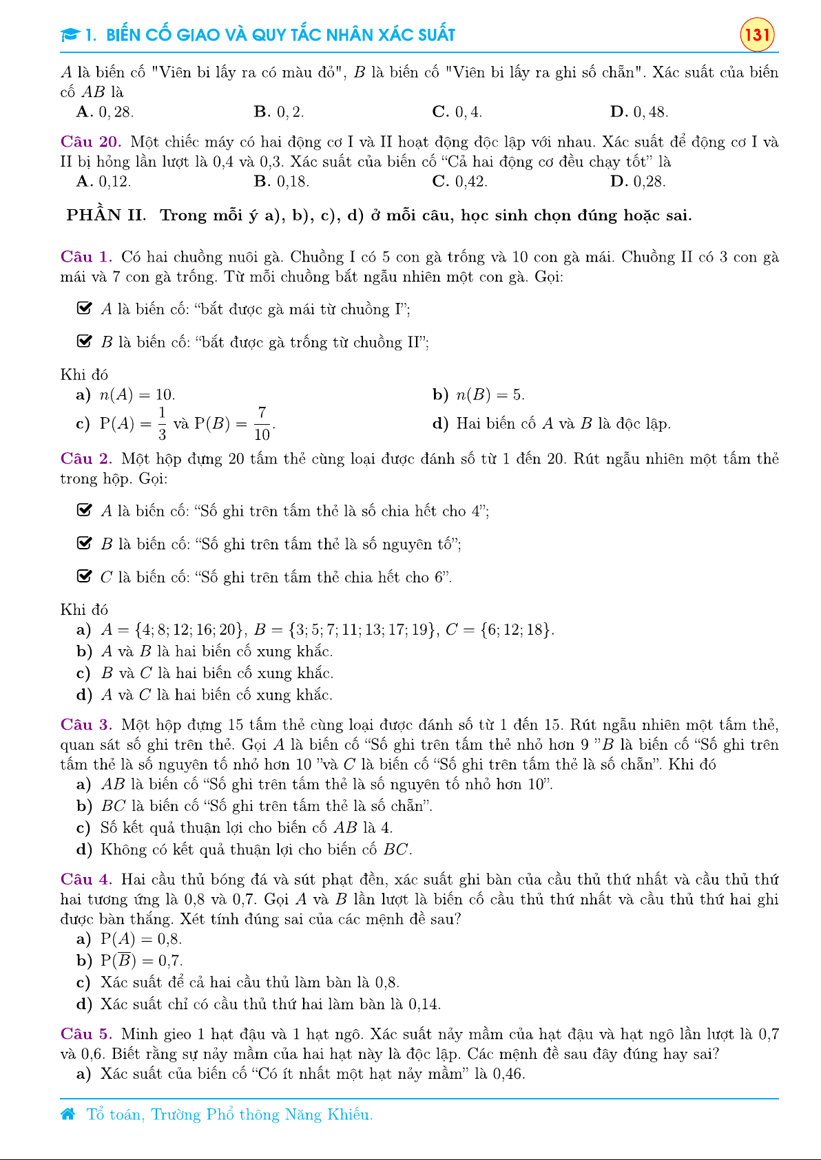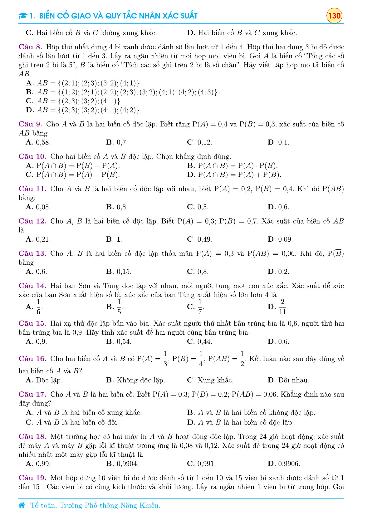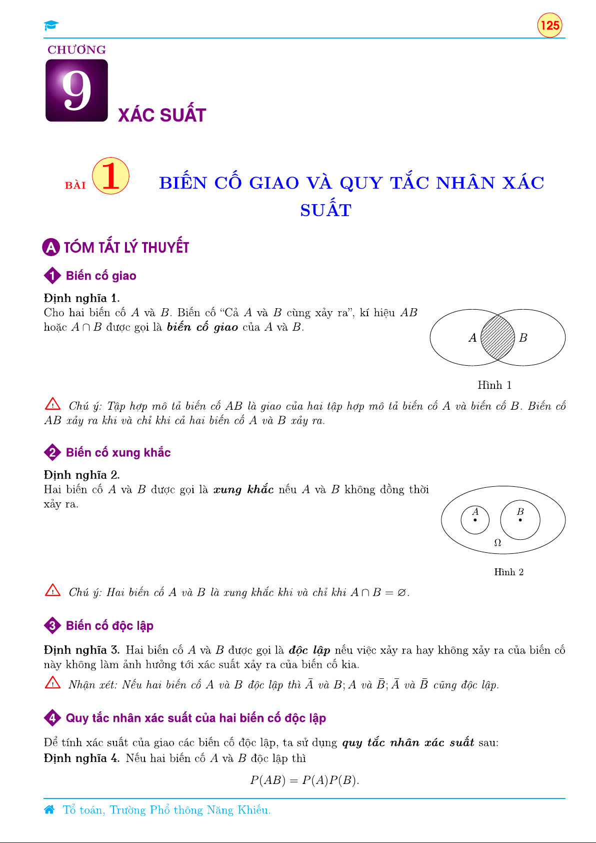 Chương 9 Xác suất - Lý thuyết chương 1 Biến cố giao và quy tắc nhân xác suất | Toán 11