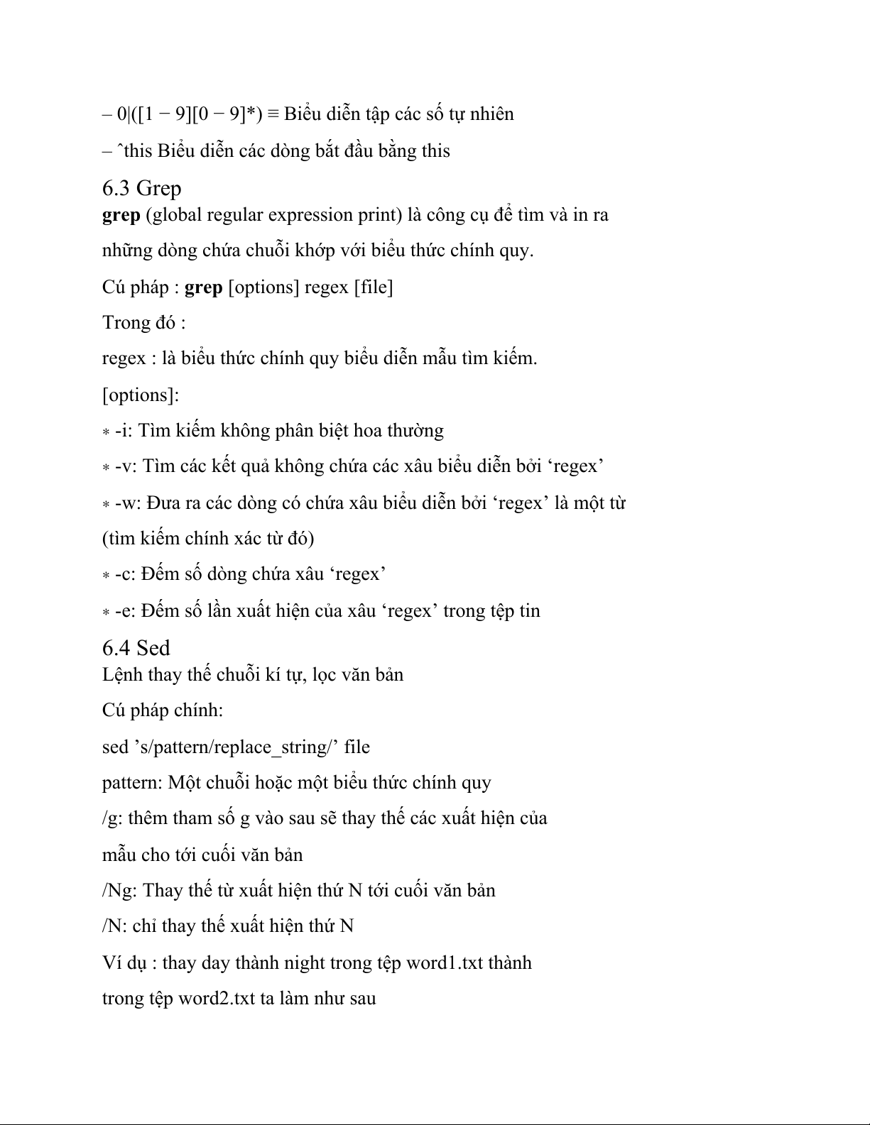 ∗ -e: Đếm số lần xuất hiện của xâu ‘regex’ trong tệp tin 6.4 Sed