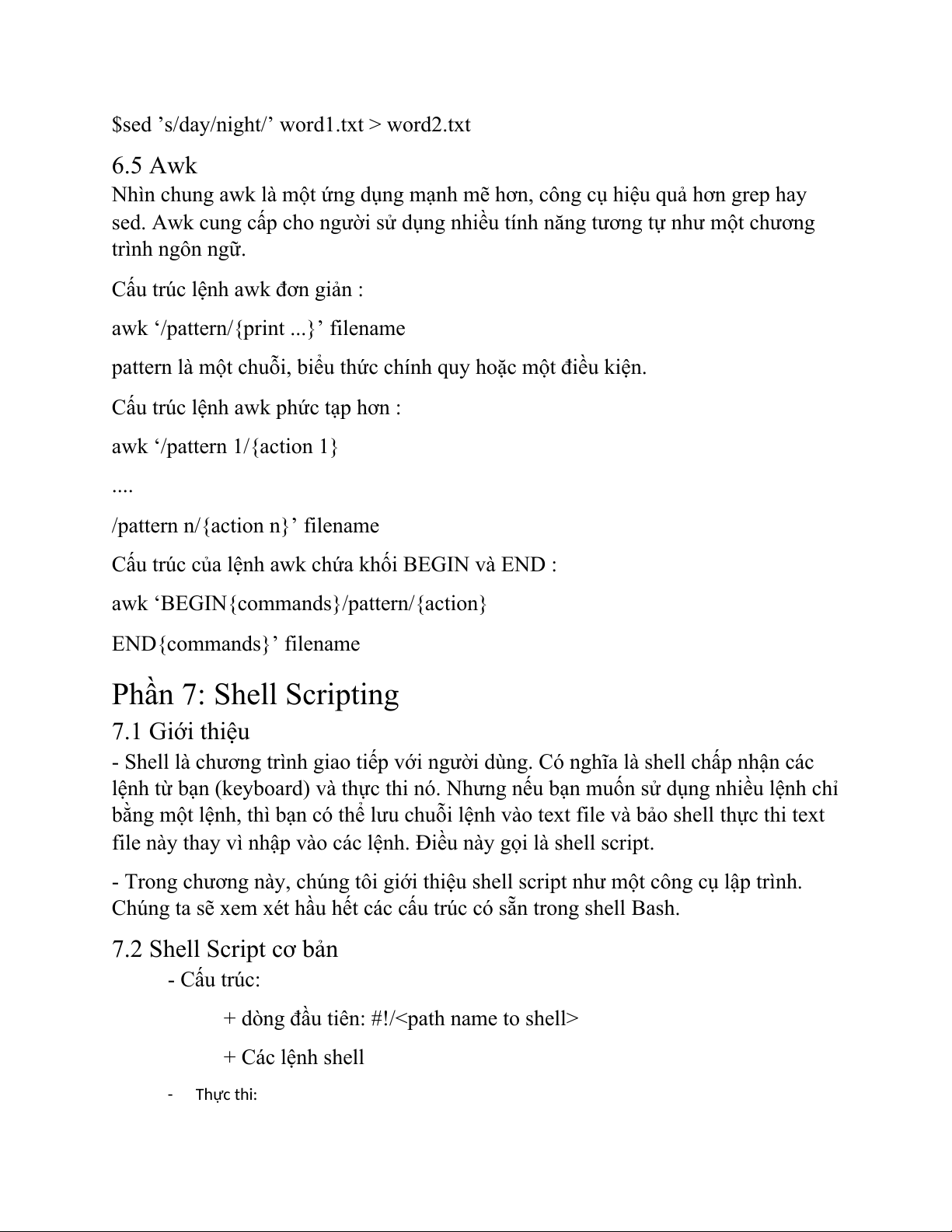 awk ‘BEGIN{commands}/pattern/{action} END{commands}’ filename Phần 7: Shell Scripting 7.1 Giới thiệu
