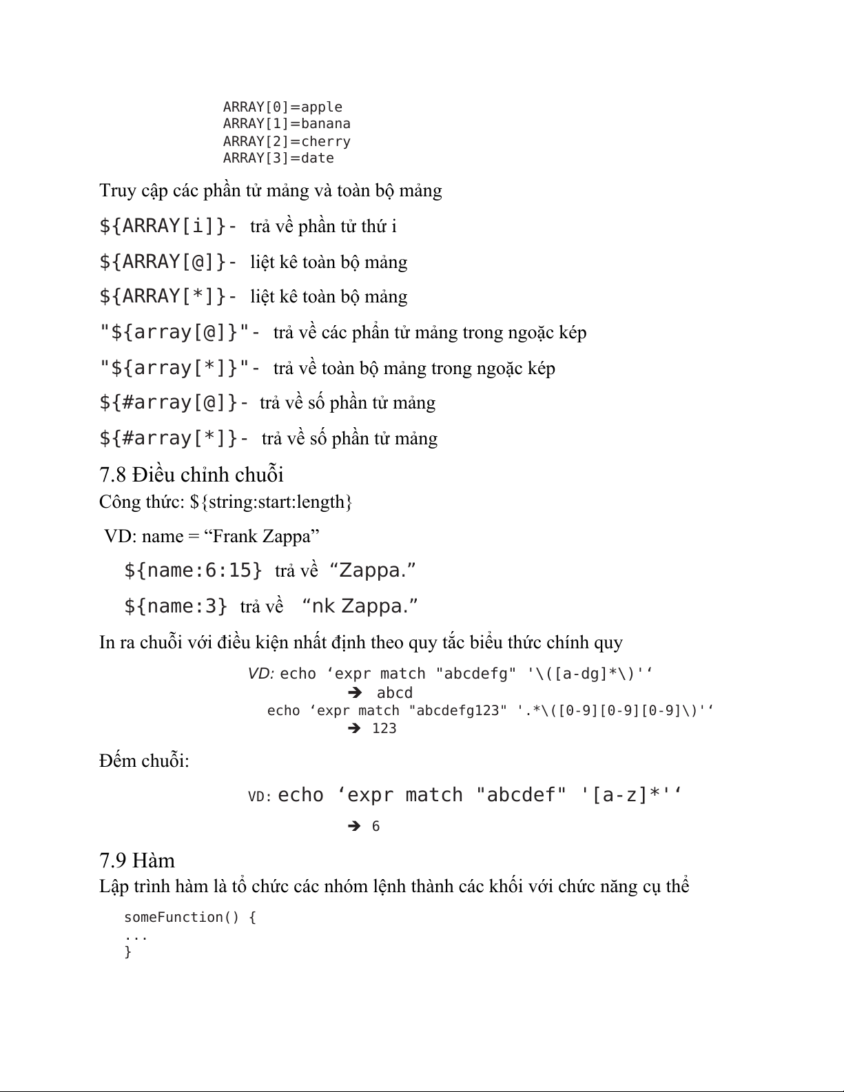 ${#array[*]}- trả về số phần tử mảng 7.8 Điều chỉnh chuỗi