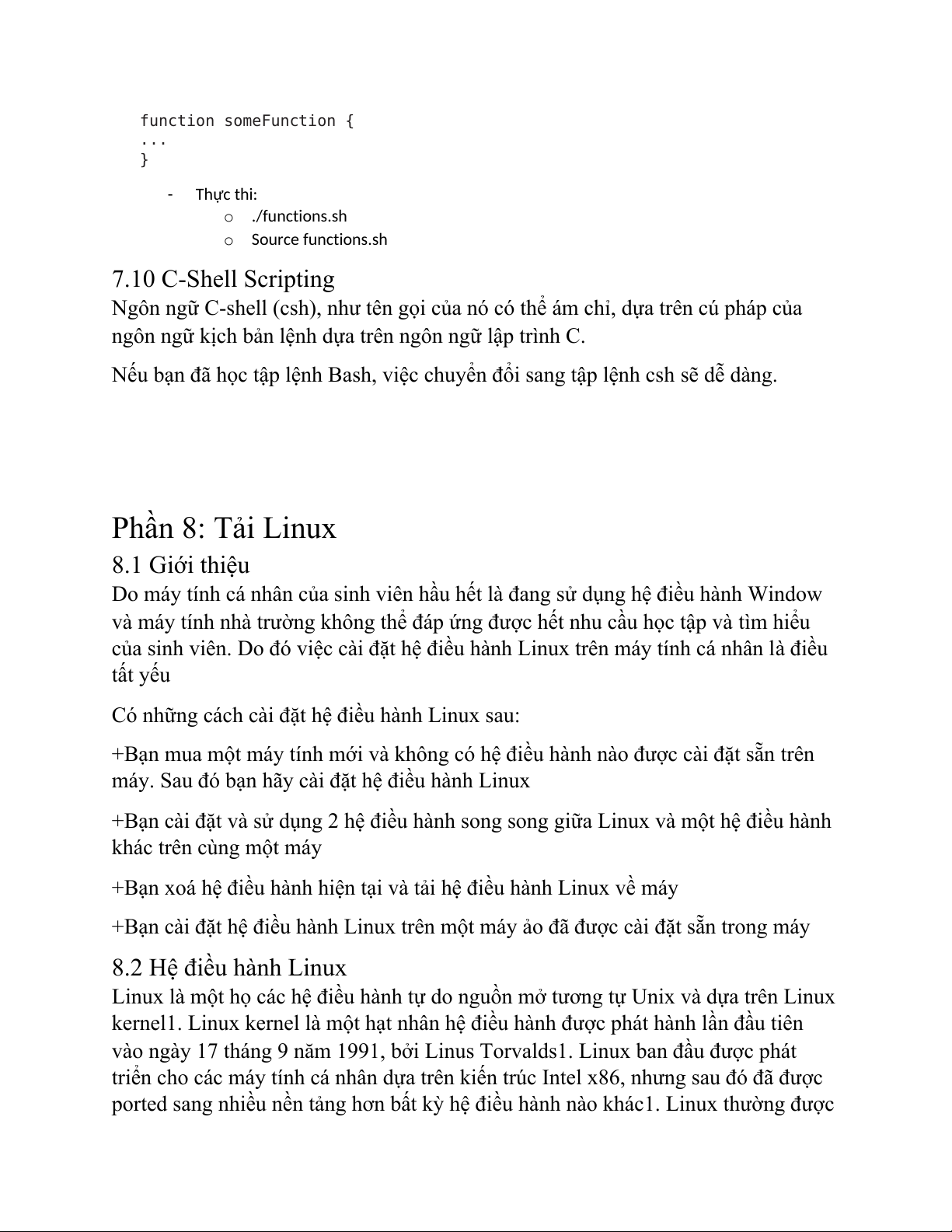 Nếu bạn đã học tập lệnh Bash, việc chuyển đổi sang tập lệnh csh sẽ dễ dàng. Phần 8: Tải Linux 8.1 Giới thiệu