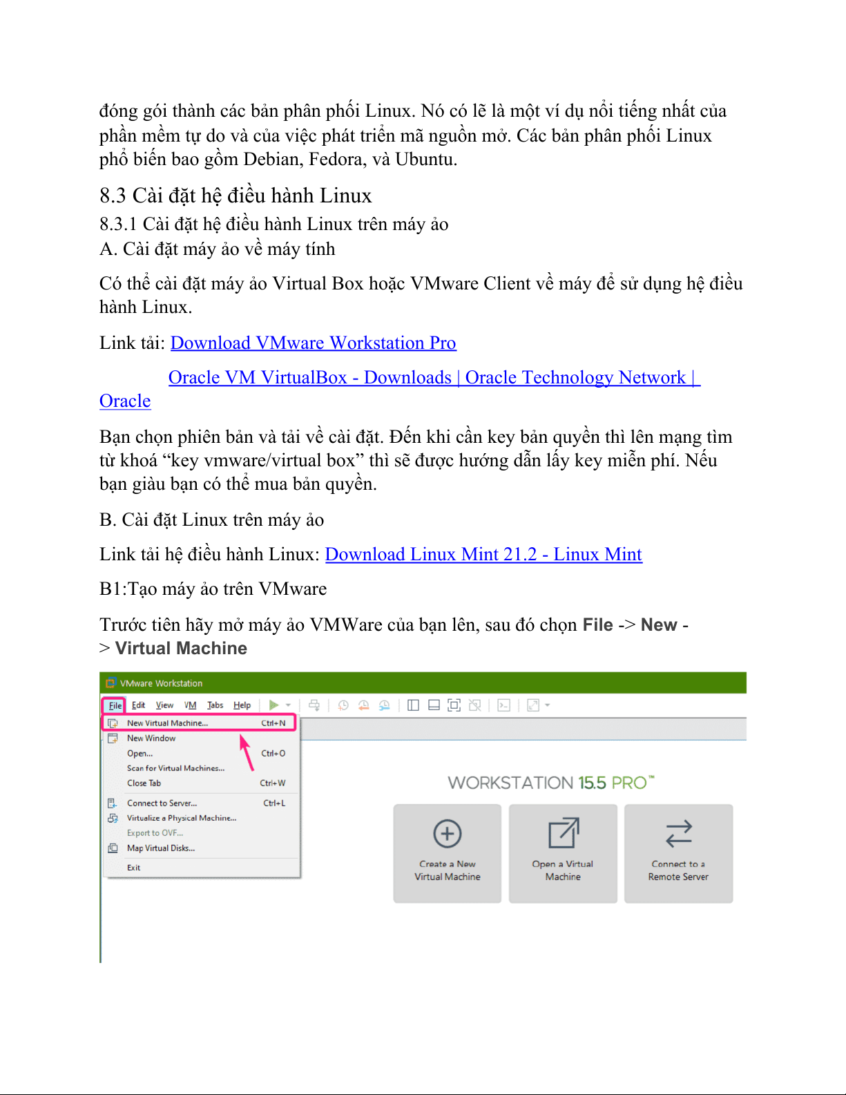 +Bạn cài đặt hệ điều hành Linux trên một máy ảo đã được cài đặt sẵn trong máy 8.2 Hệ điều hành Linux