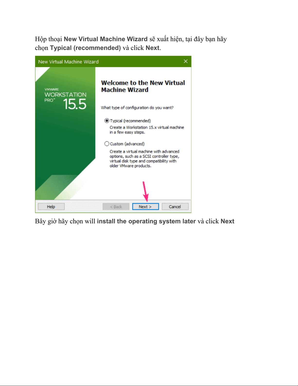 Hộp thoại NewVirtualMachineWizard sẽ xuất hiện, tại đây bạn hãy