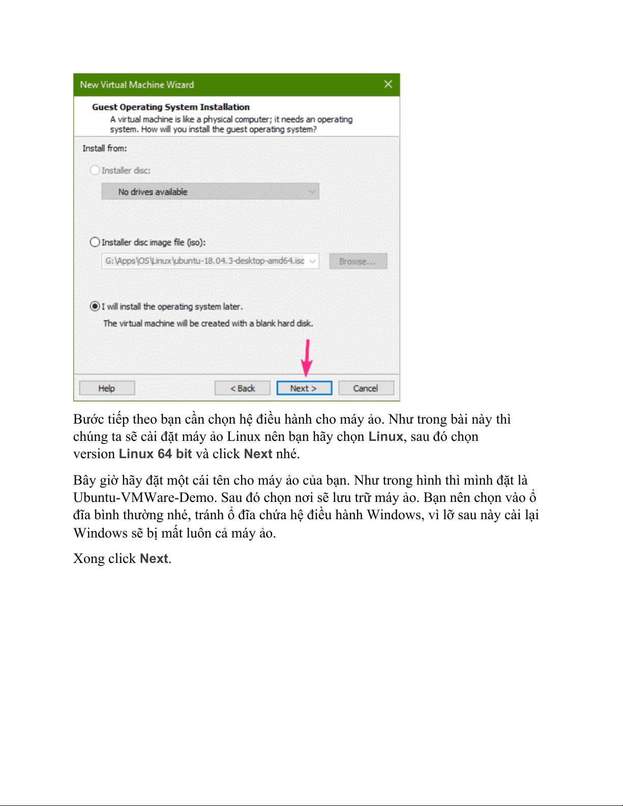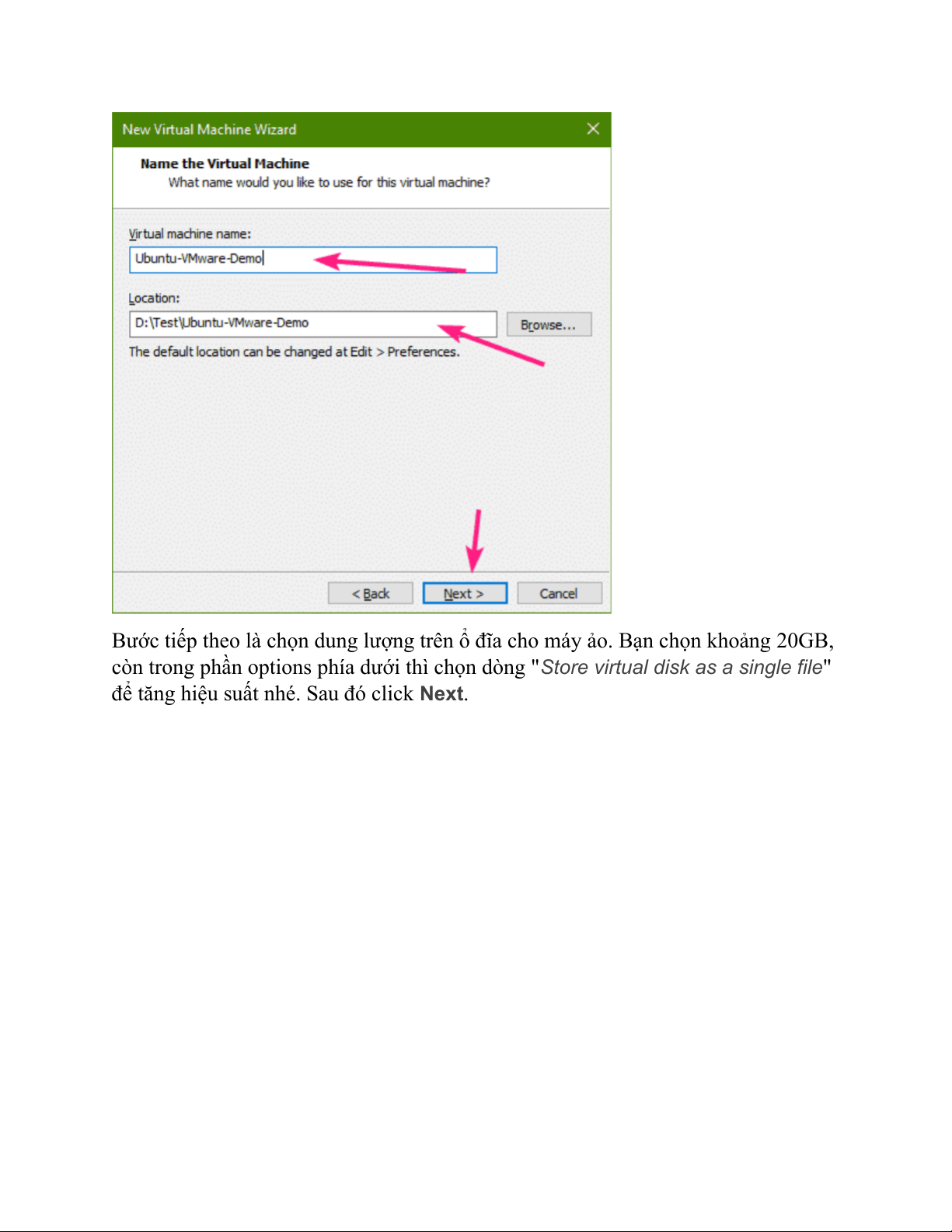 Ubuntu-VMWare-Demo. Sau đó chọn nơi sẽ lưu trữ máy ảo. Bạn nên chọn vào ổ