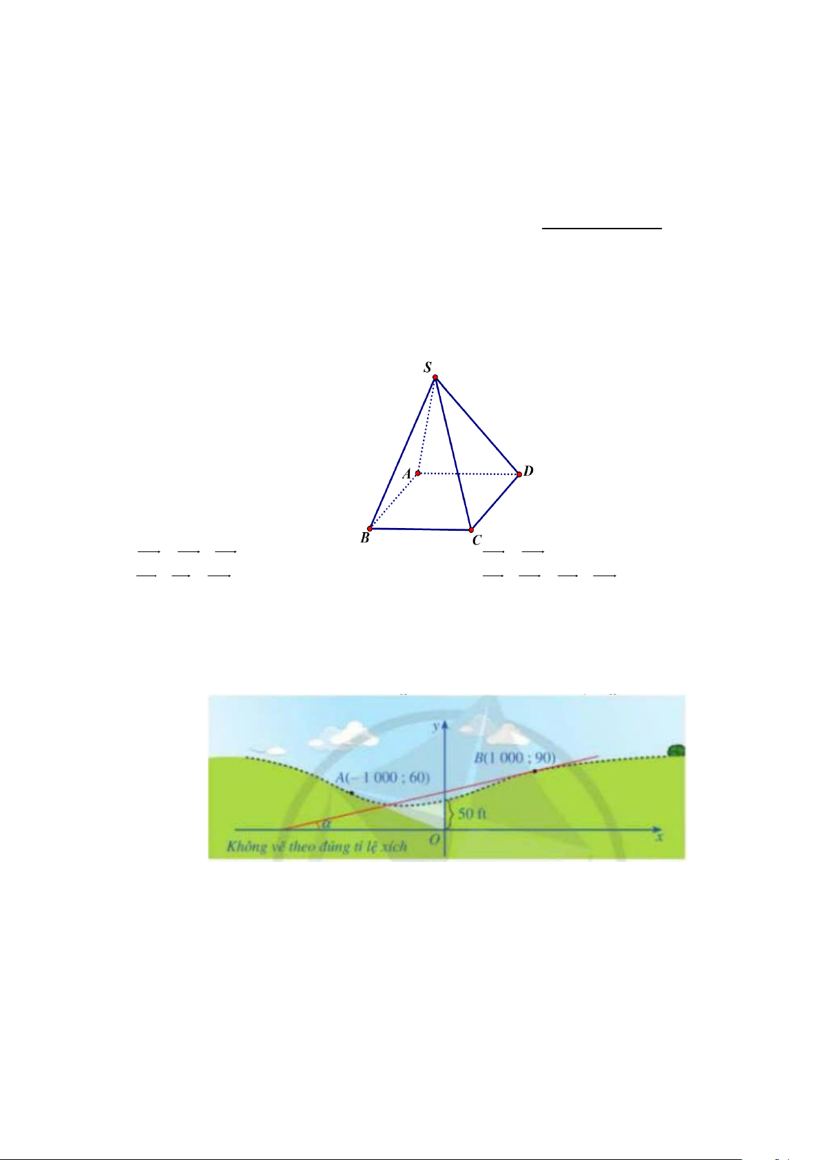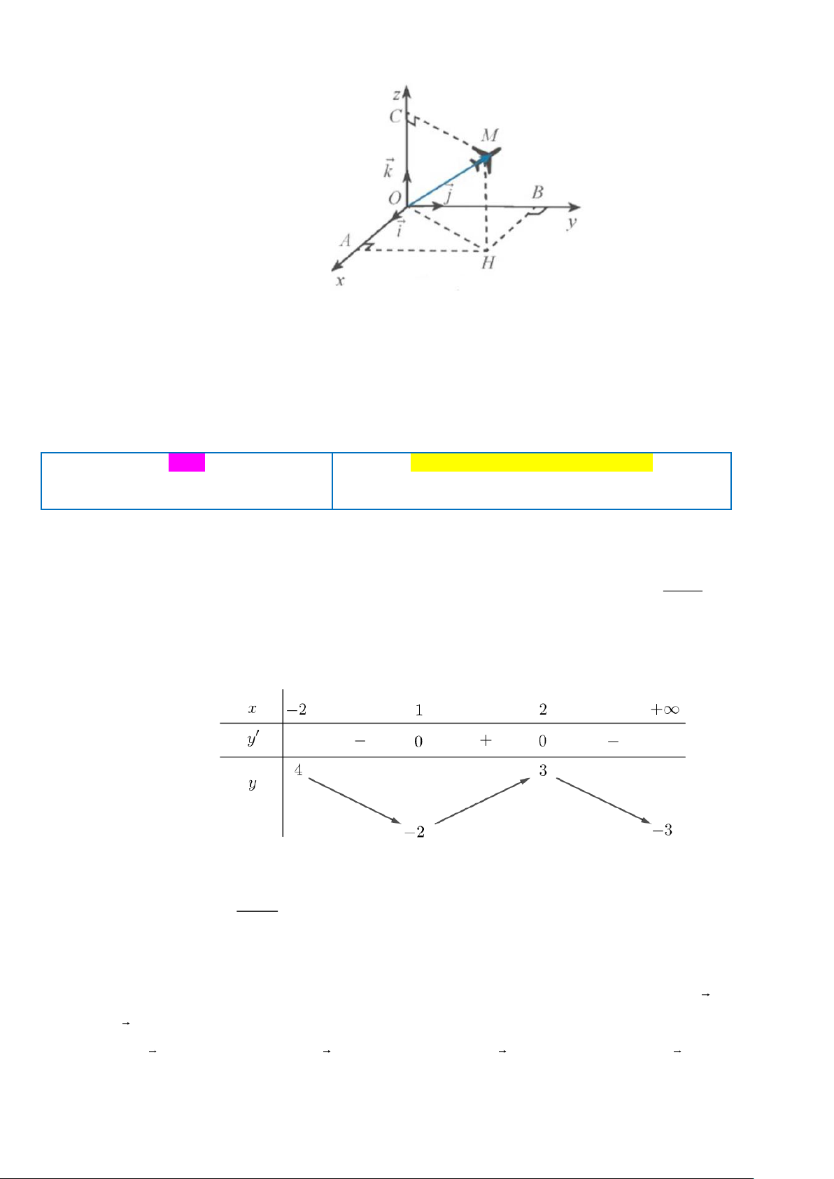 Câu 3. Ở một sân bay, vị trí của máy bay được xác định bởi điểm M trong không gian Oxyz như hình vẽ. Gọi