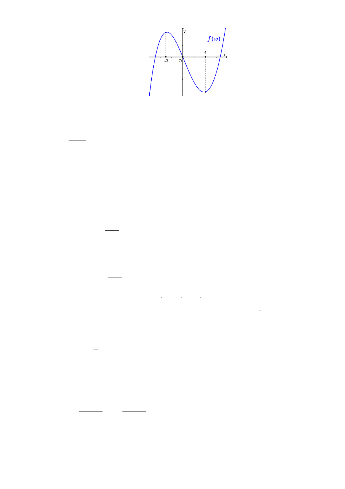 Câu 12. Cho hàm số y = f (x ) có đồ thị như hình vẽ. Hàm số đồng biến trên khoảng nào dưới đây? A. ( 3 − ;4). B. (1;3). C. (− ; 2 − ). D. (5;7).