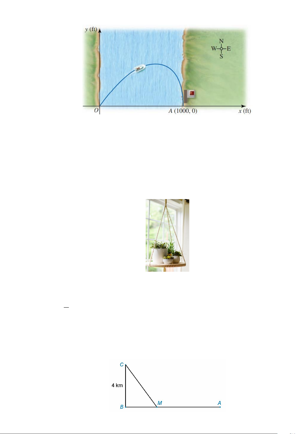 Câu 1. Một con thuyền rời bến O(0,0) trên một bờ sông, luôn đi với vận tốc không đổi 20 dặm/giờ hướng về bến (