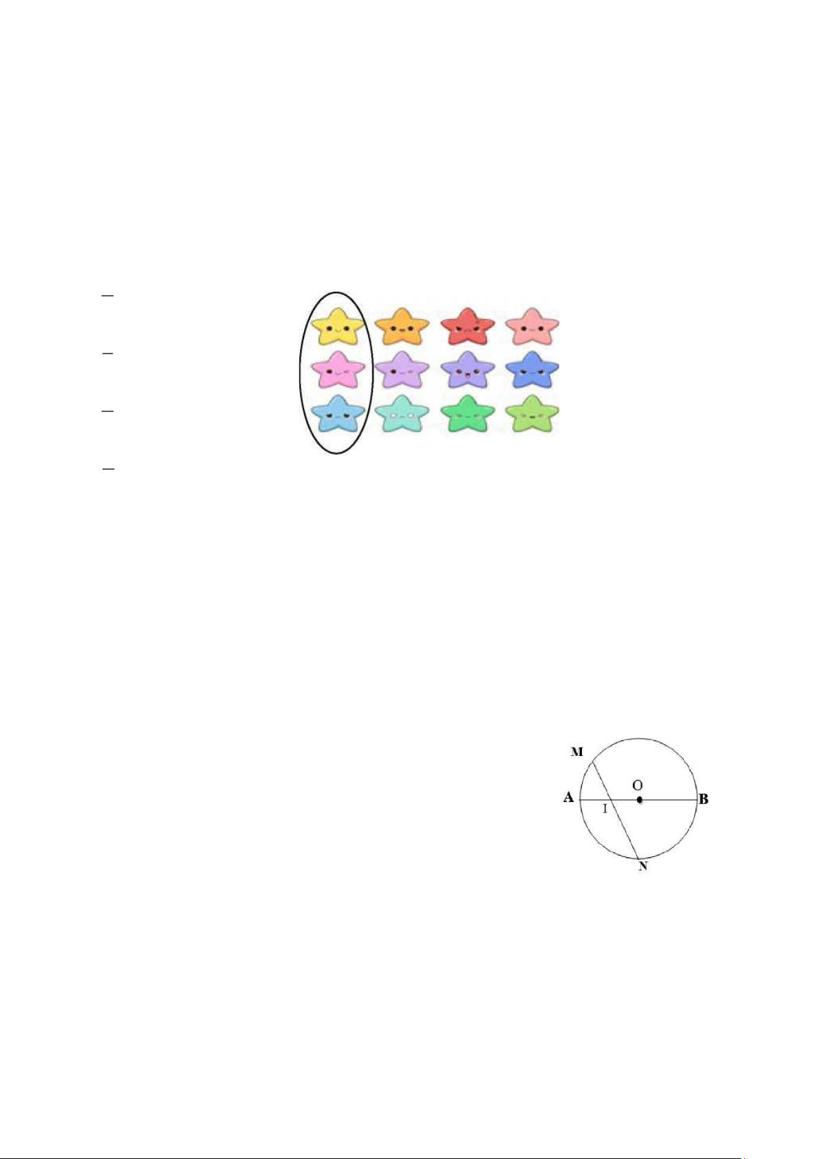Câu 3: Hình dưới đây đã khoanh tròn vào một phần mấy số ngôi sao? (0,5đ) 1 1 A. B. 2 3 1 3 C. D. 4 4
