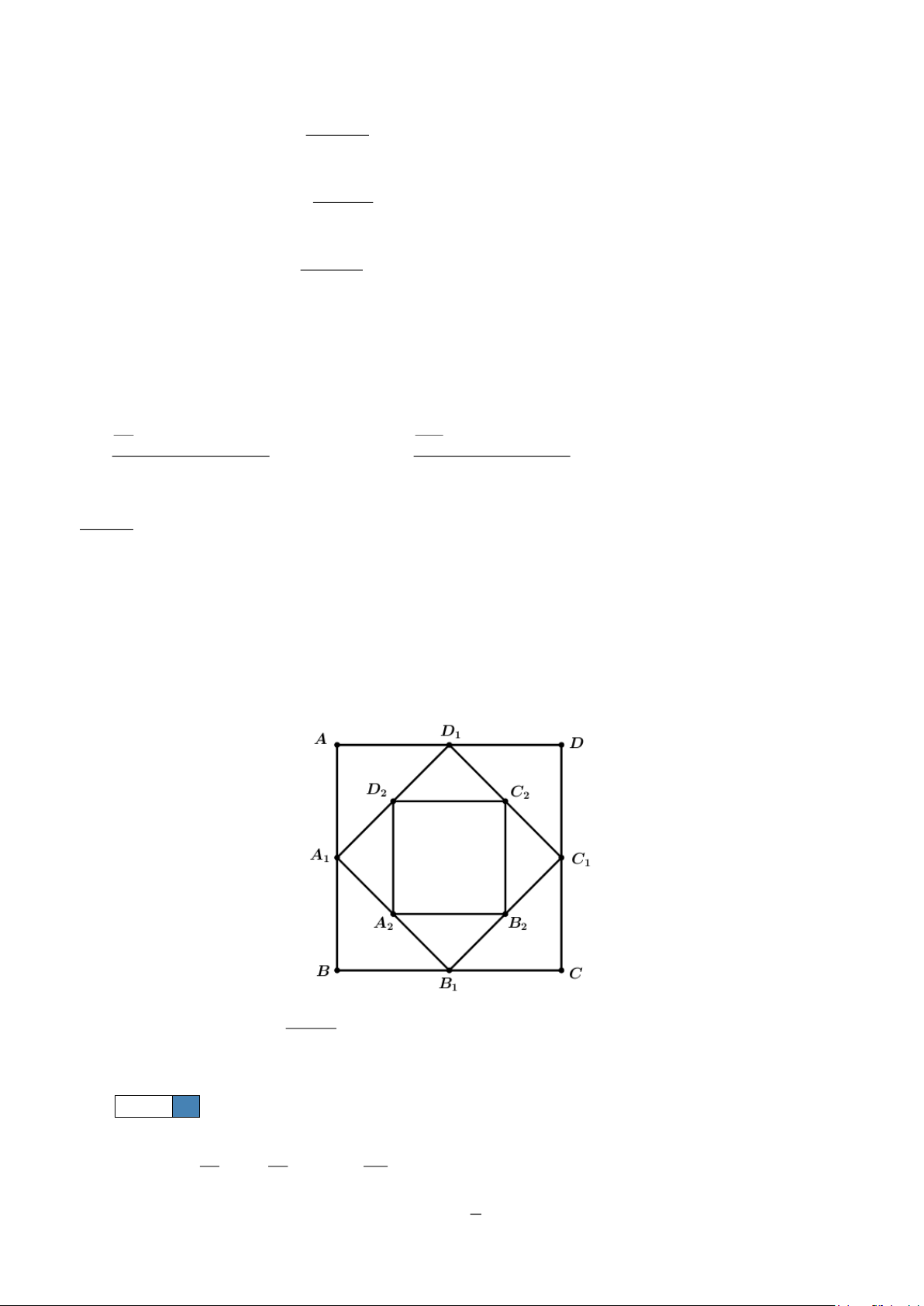 tự của bốn cạnh AB, BC,CD, DA ta được hình vuông thứ hai có diện tích S . Tiếp tục làm như thế, 2