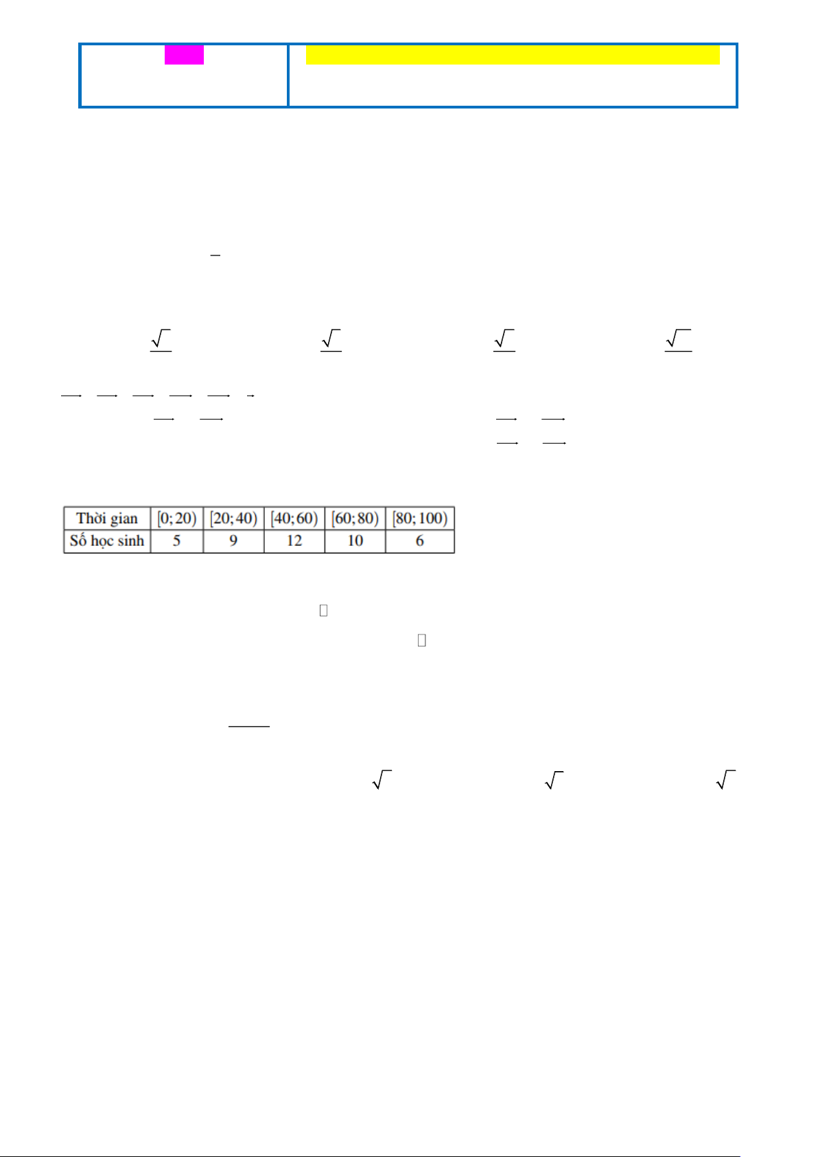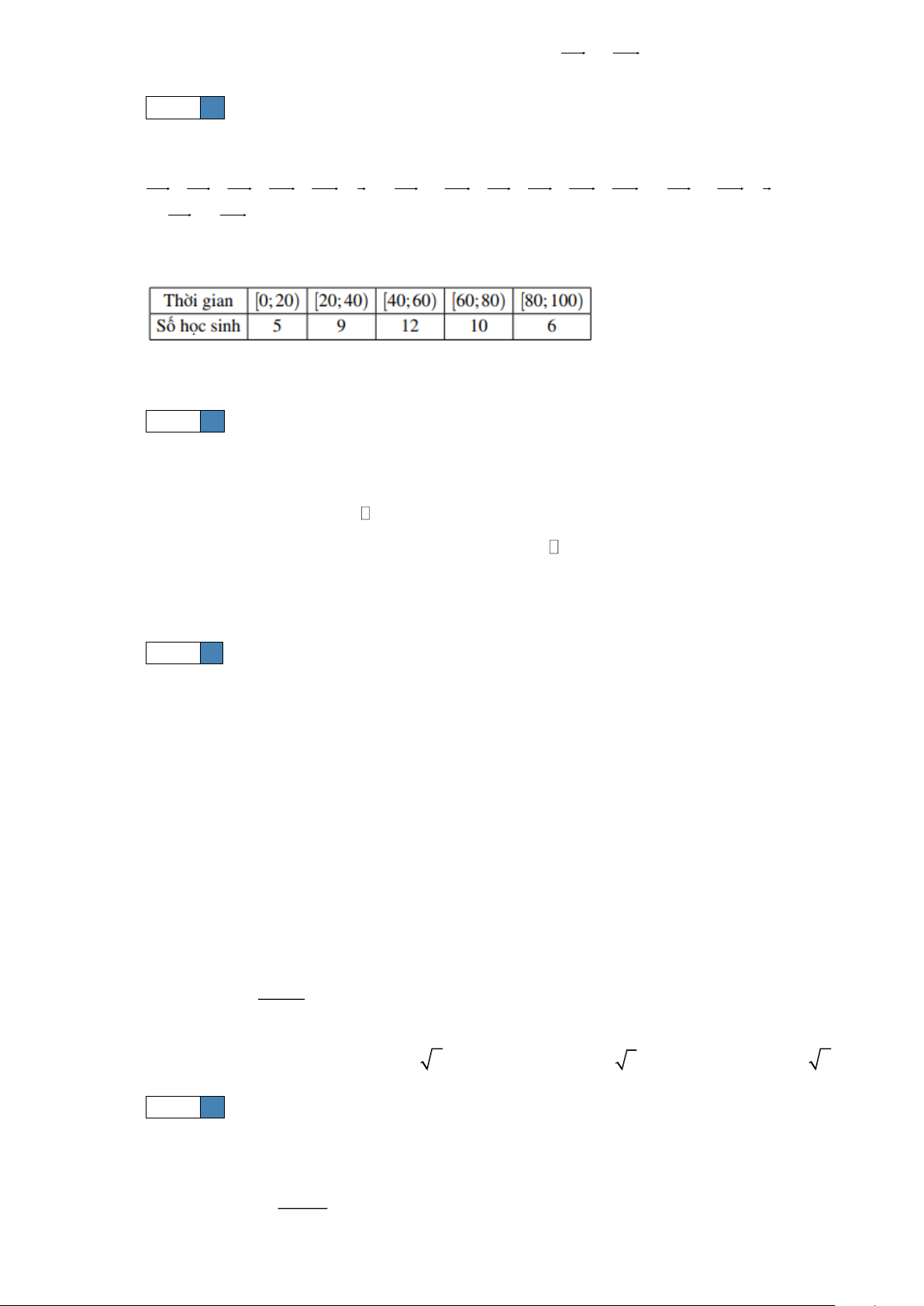 Câu 1: Số giờ sử dụng smartphone trong 1 ngày nghỉ của học sinh lớp 12A7 được thống kê trong bảng sau 19