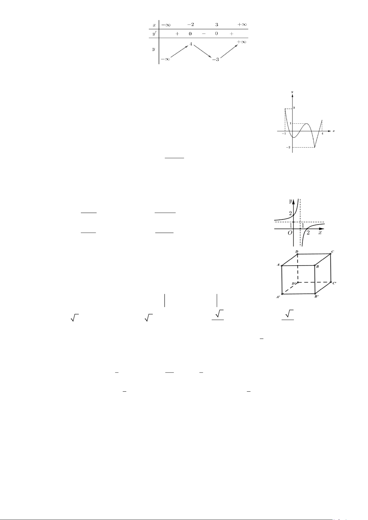 Câu 3: Cho hàm số có bảng biến thiên như sau: