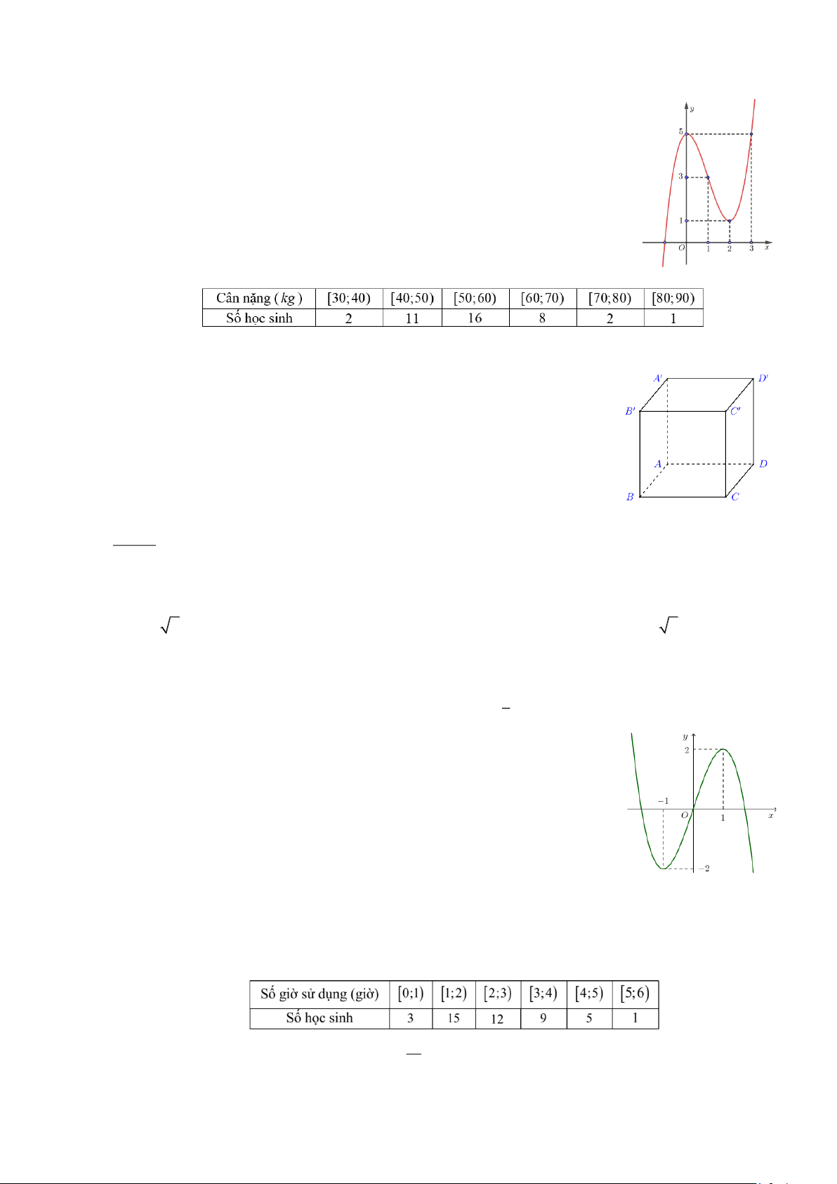 Câu 6: Điều tra cân nặng các học sinh (tính theo đơn vị kilôgram) ở một lớp 12 của