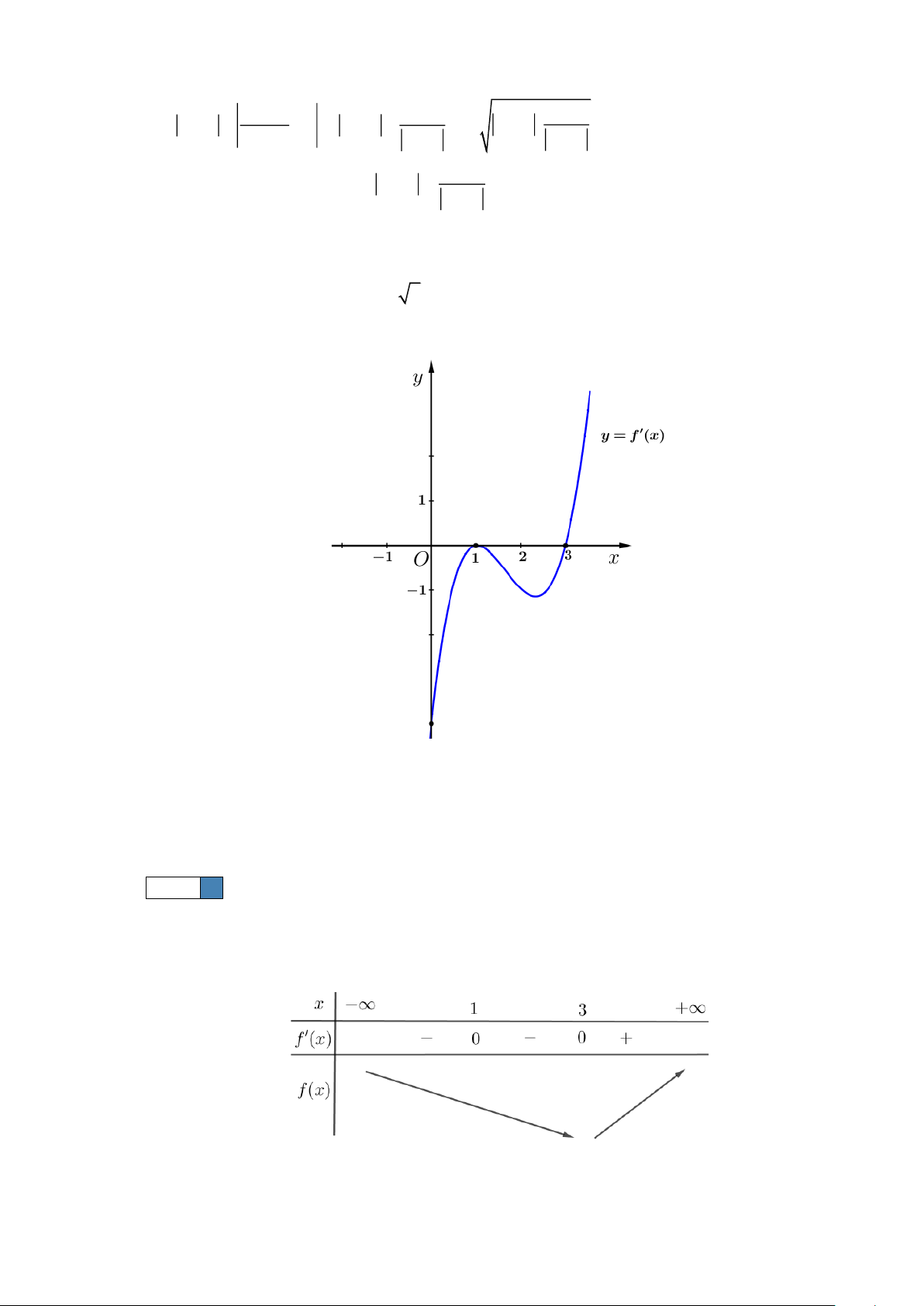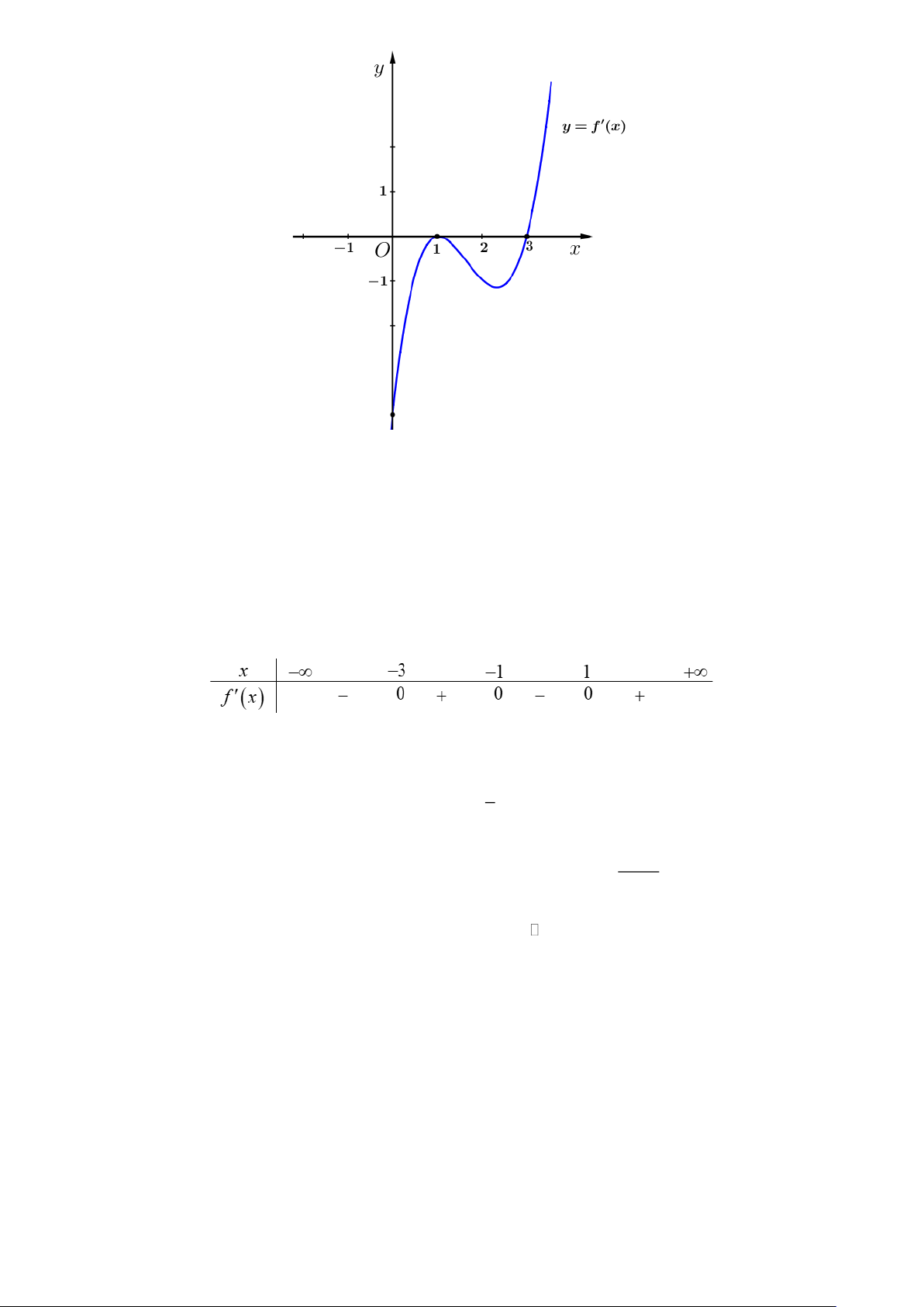 Câu 12. Cho hàm số y = f (x) có đạo hàm và liên tục trên . Biết rằng đồ thị hàm số y = f (x) như dưới đây Trang 2