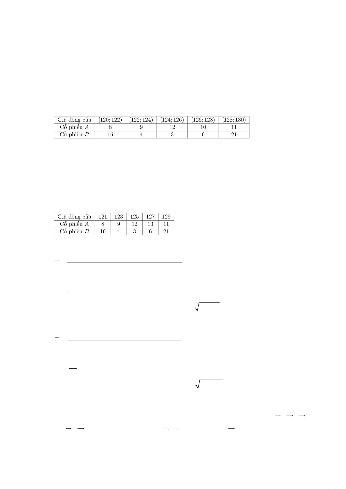 Câu 2. Giá đóng cửa của một cổ phiếu là giá của cổ phiếu đó cuối một phiên giao dịch. Bảng sau thống