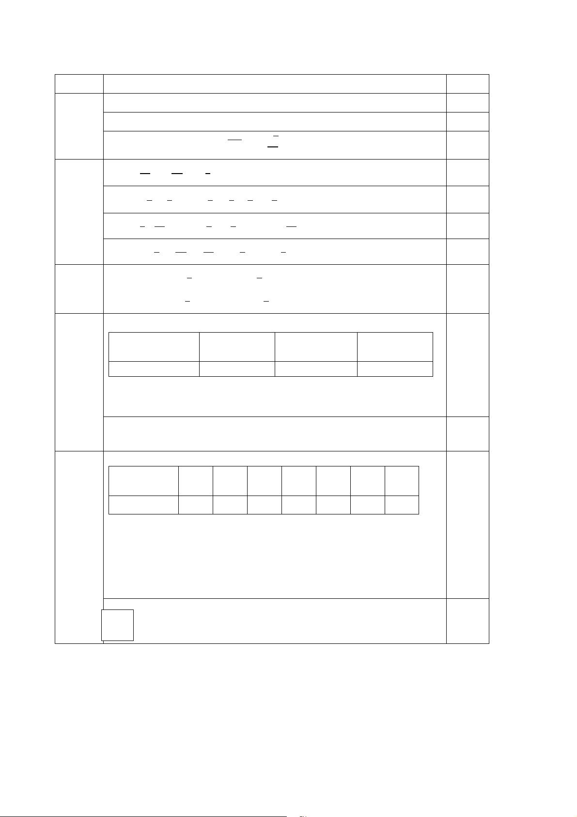 II. Tự luận ( 7 điểm) Câu Đáp án Biểu điểm 3 3 − 7 17 3 − 7 3 − 7 3 17 + = + a) . . . 2 10 2 10 10 2 2 0,25 Câu 13 37 − = .10 = -37 ( 1 điểm) 10 0,25 − − + (− )2 2 1 b) 64 4 10 − 3 2 9 4 2 9 0,25 = 8 − + 4.10 − 3. . 9 4 2 3 94 3 0,25 = 32 − . = . = 47 3 2 3 2 0,25