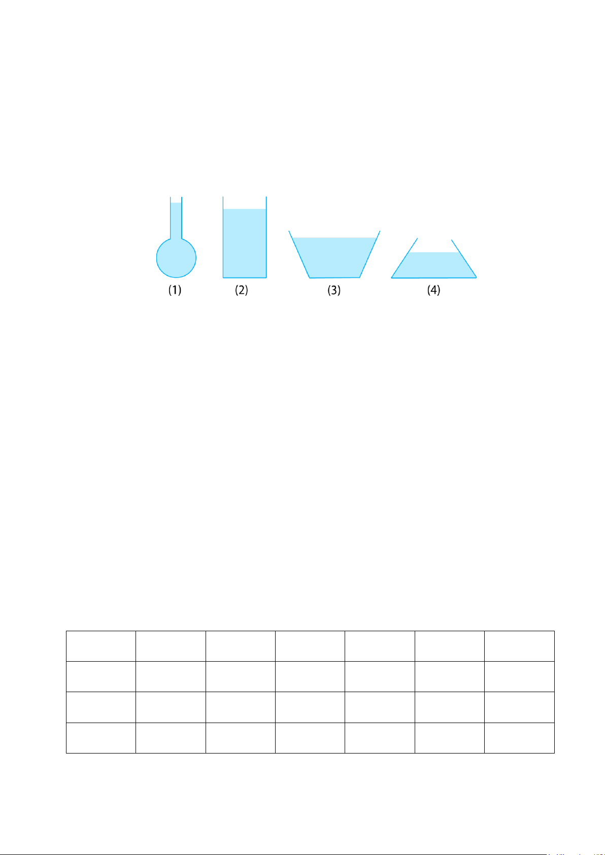 Câu 16: Trong 4 bình dưới đây, bình nào có áp suất của nước lên đáy bình lớn nhất?