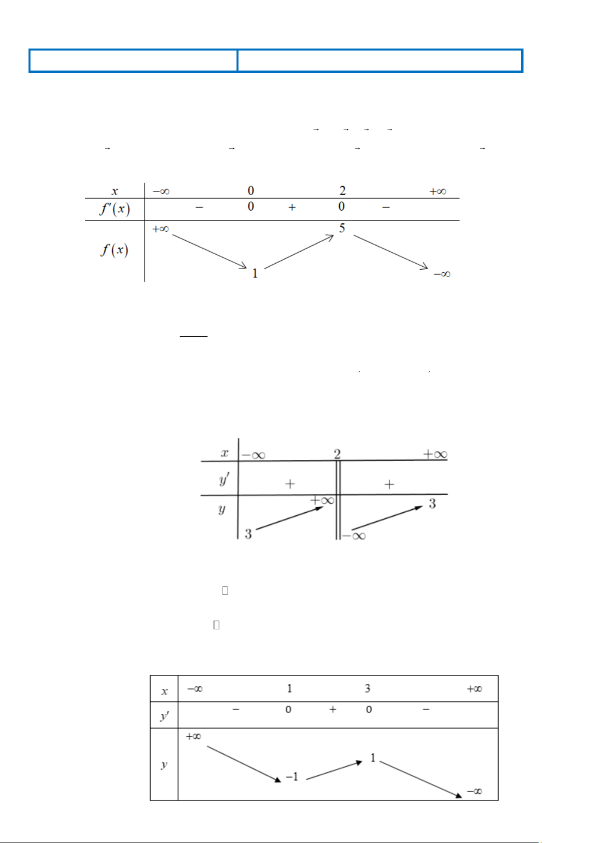 Câu 2. Cho hàm số y = f (x) có bảng biến thiên như sau