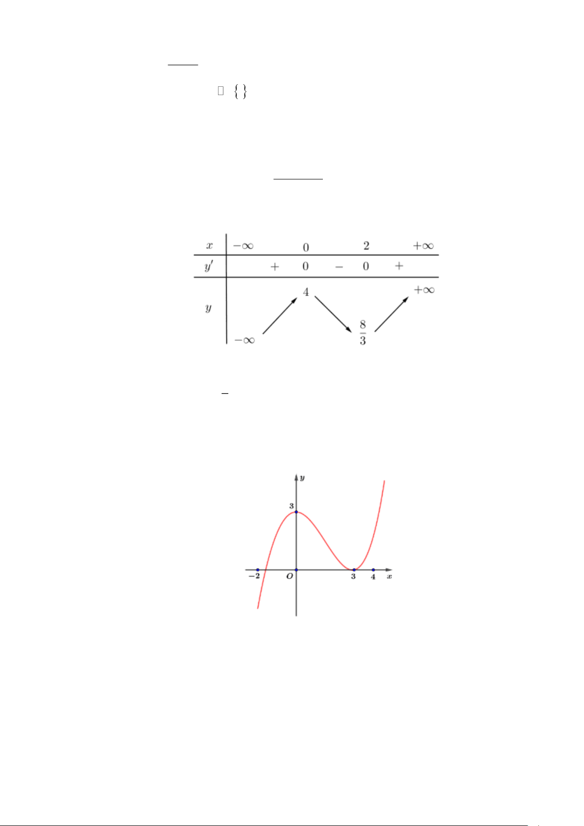 − ;3) có bảng biến thiên như hình vẽ.