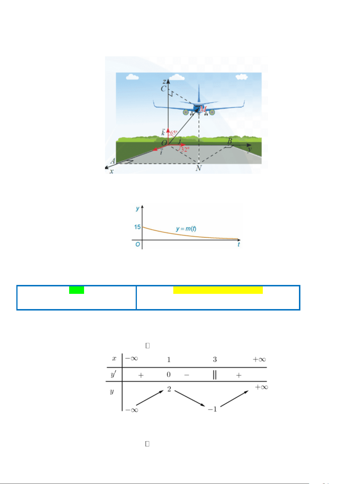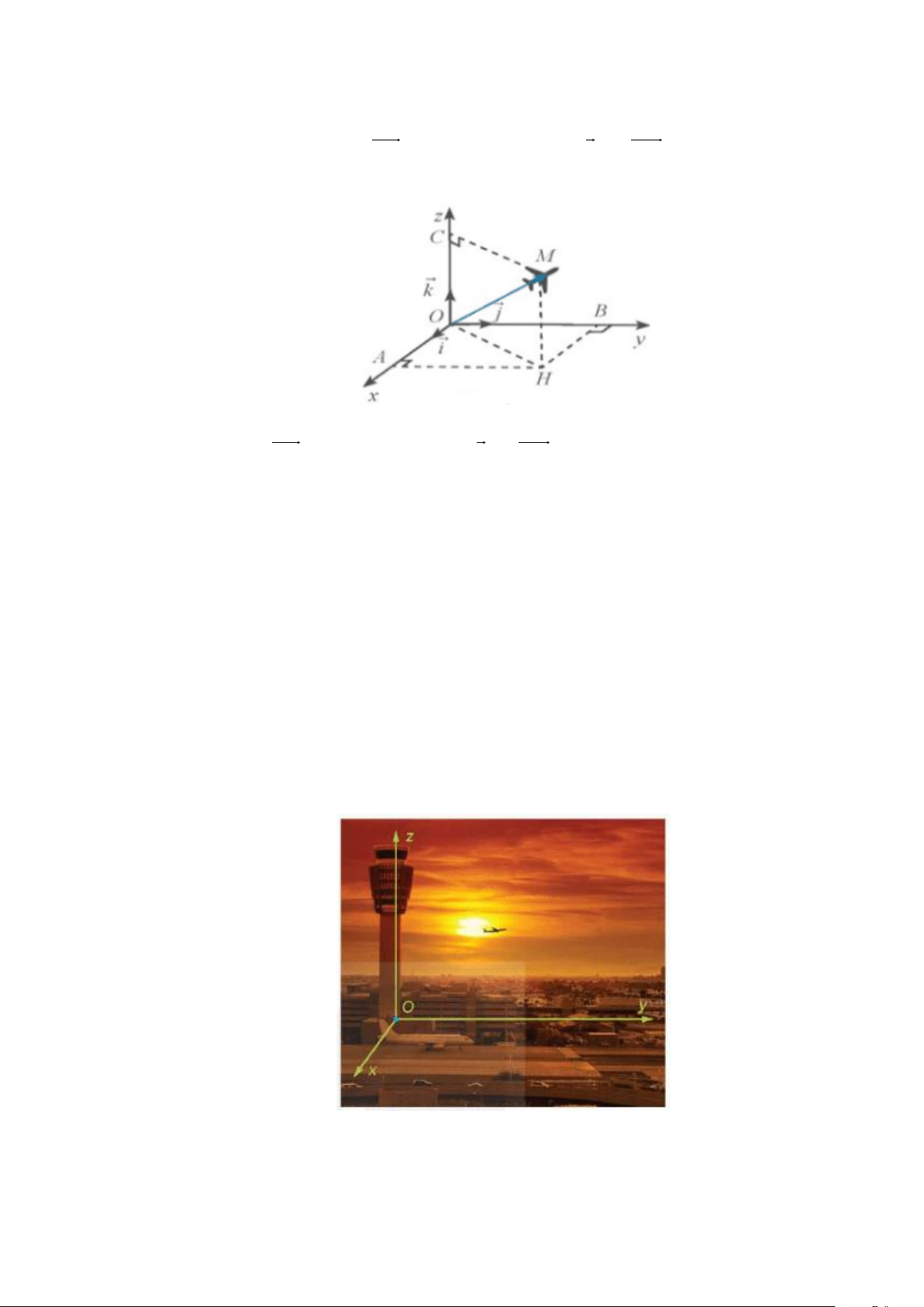 Câu 1. Ở một sân bay, vị trí của máy bay được xác định bởi điểm M trong không gian Oxyz như hình vẽ. Gọi