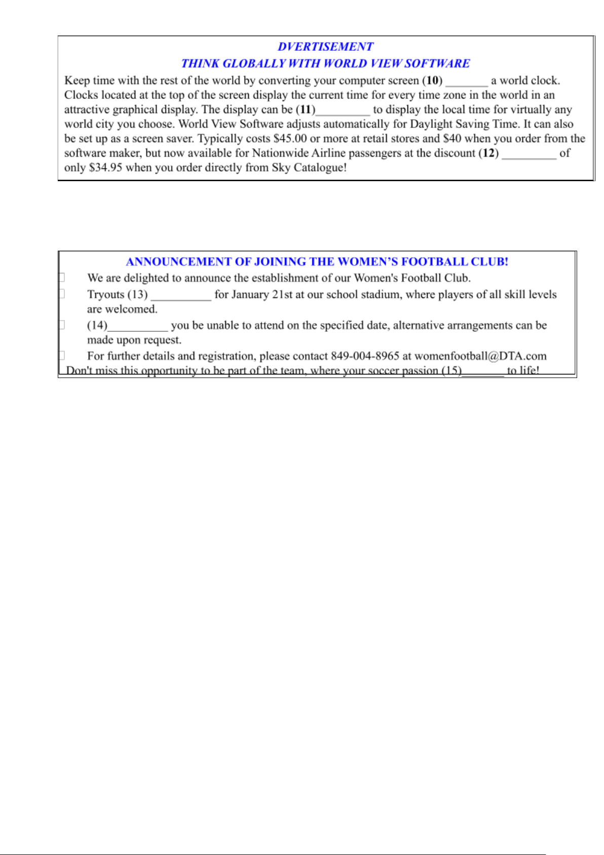 sheet to indicate the correct option that best fits each of the numbered blanks from 10 to 15.