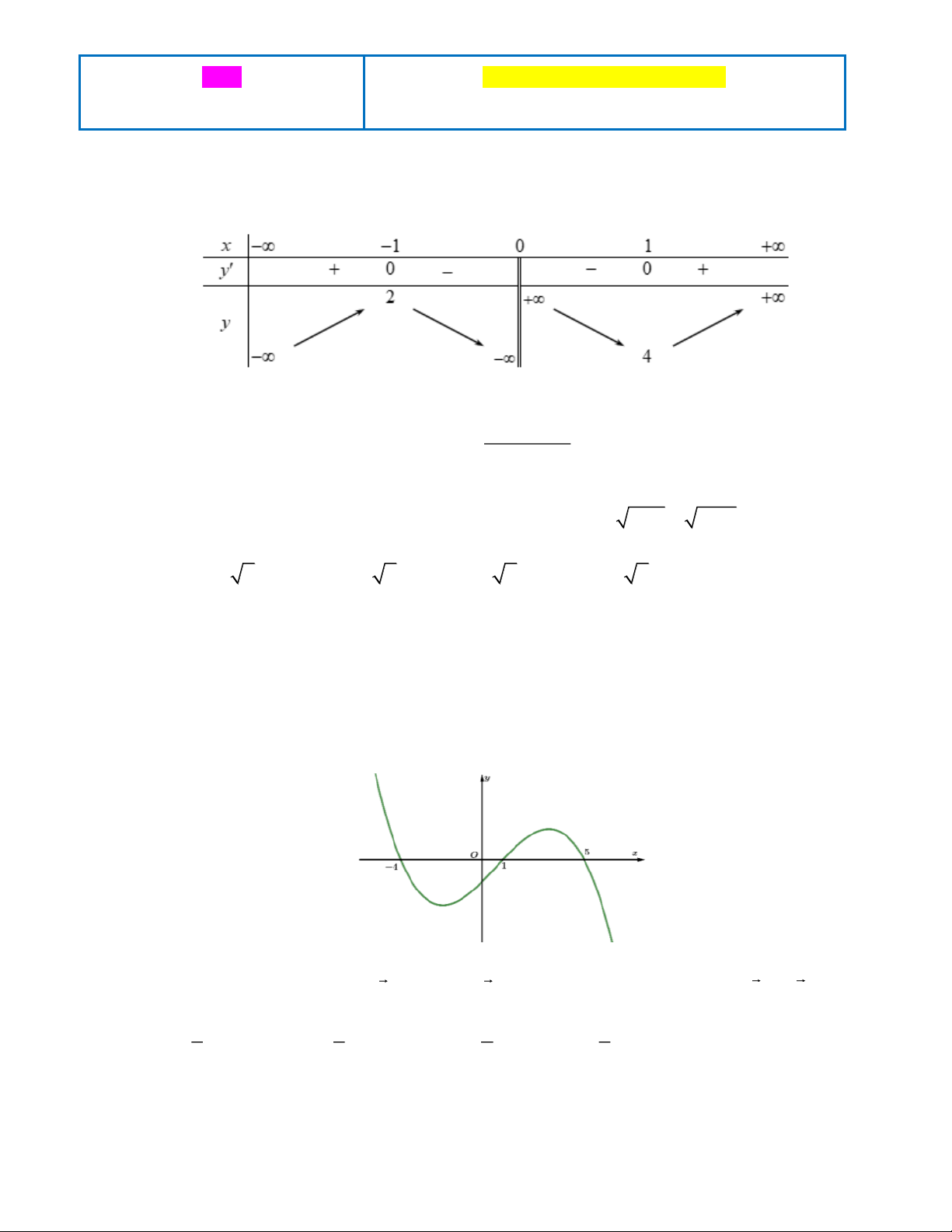 Câu 1: Cho hàm số y = f (x) có bảng biến thiên như hình vẽ. Hàm số y = f (x) đạt cực đại tại điểm nào dưới đây?