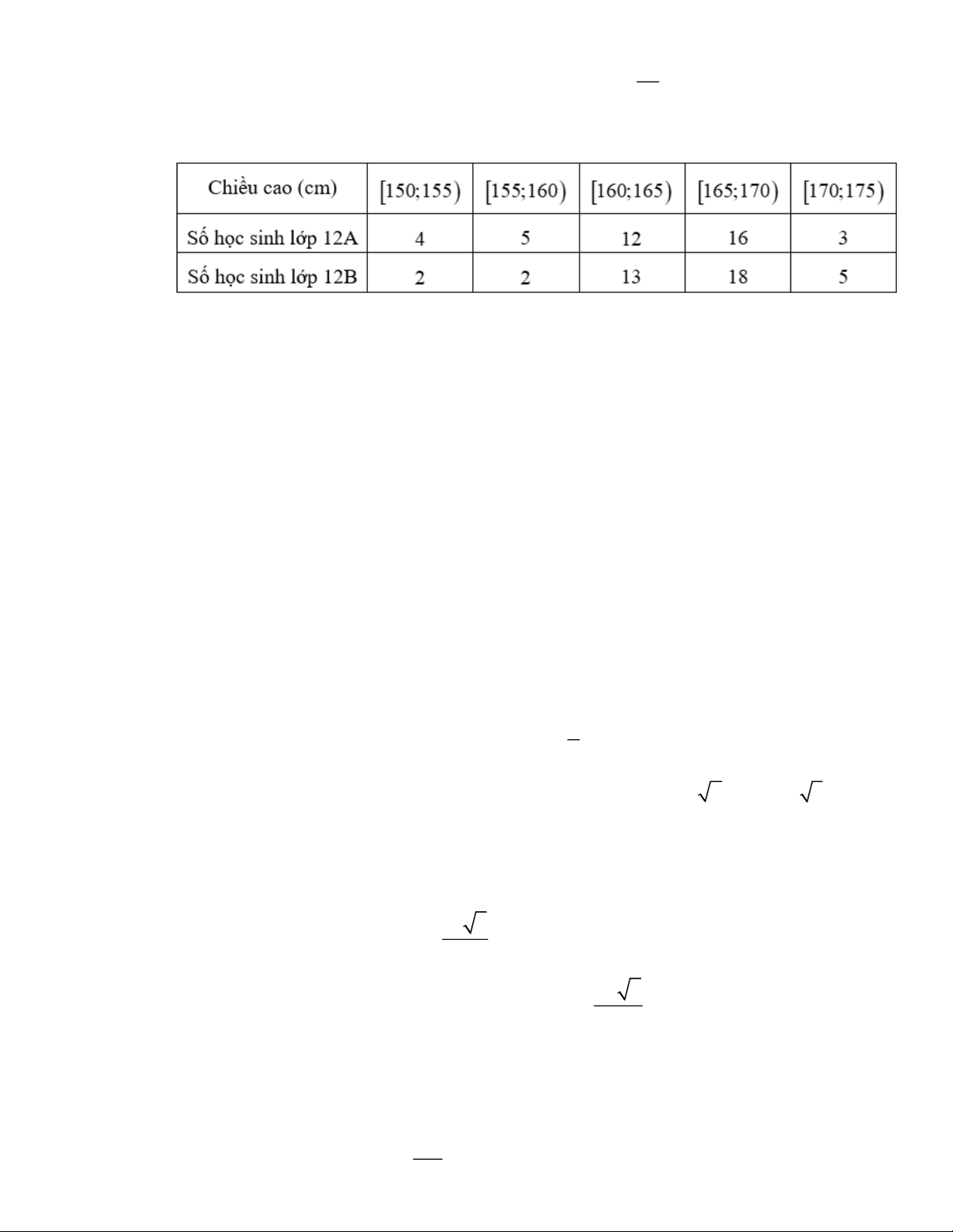 d) Sự biến động về chiều cao trung bình của học sinh lớp 12A nhỏ hơn sự biến động về chiều cao