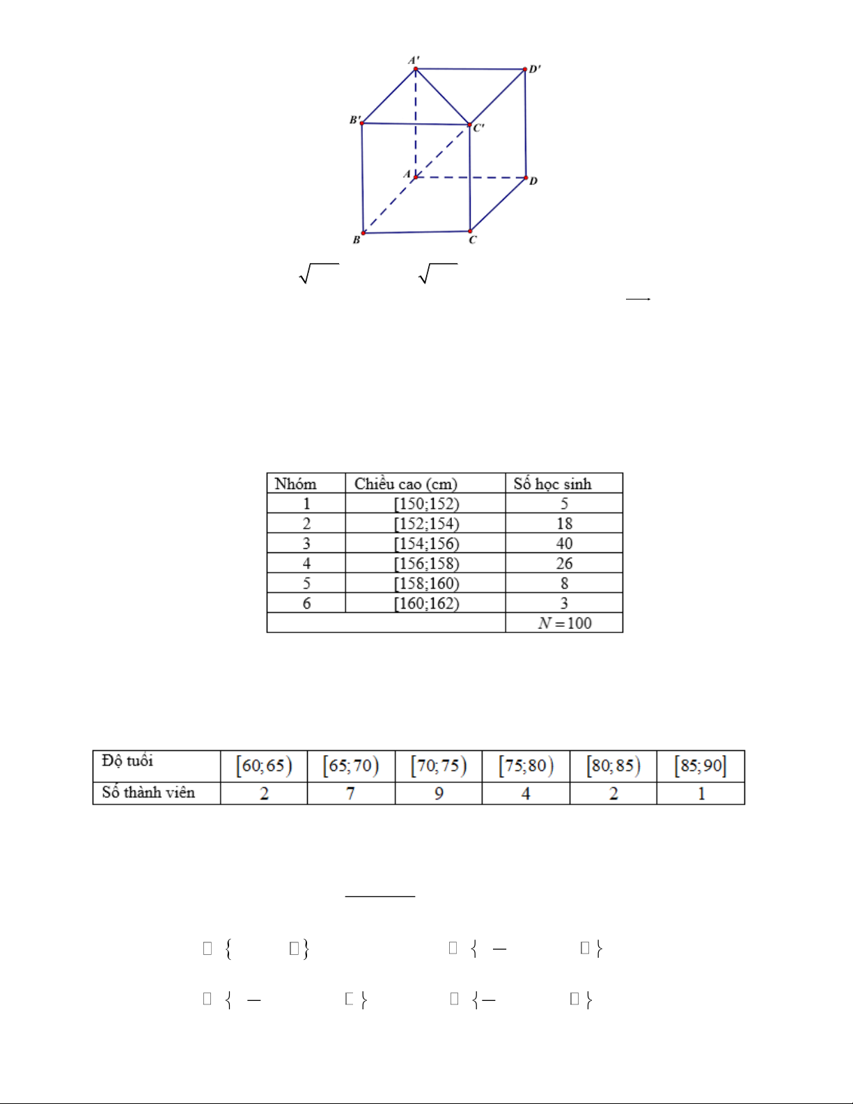 Câu 26: Nhân dịp khám sức khỏe học sinh đầu năm, người ta đo chiều cao của các học sinh (đơn vị: cm)