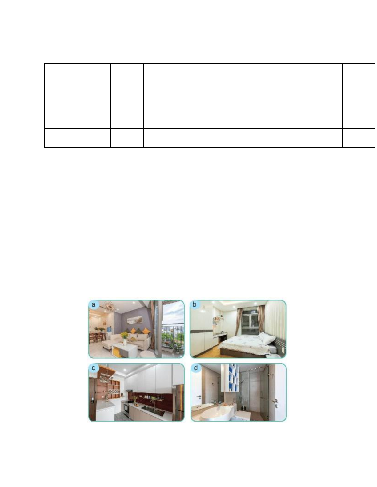Câu 1. Hình nào sau đây thuộc khu vực phòng khách của ngôi nhà? A. Hình a B. Hình b C. Hình c D. Hình d
