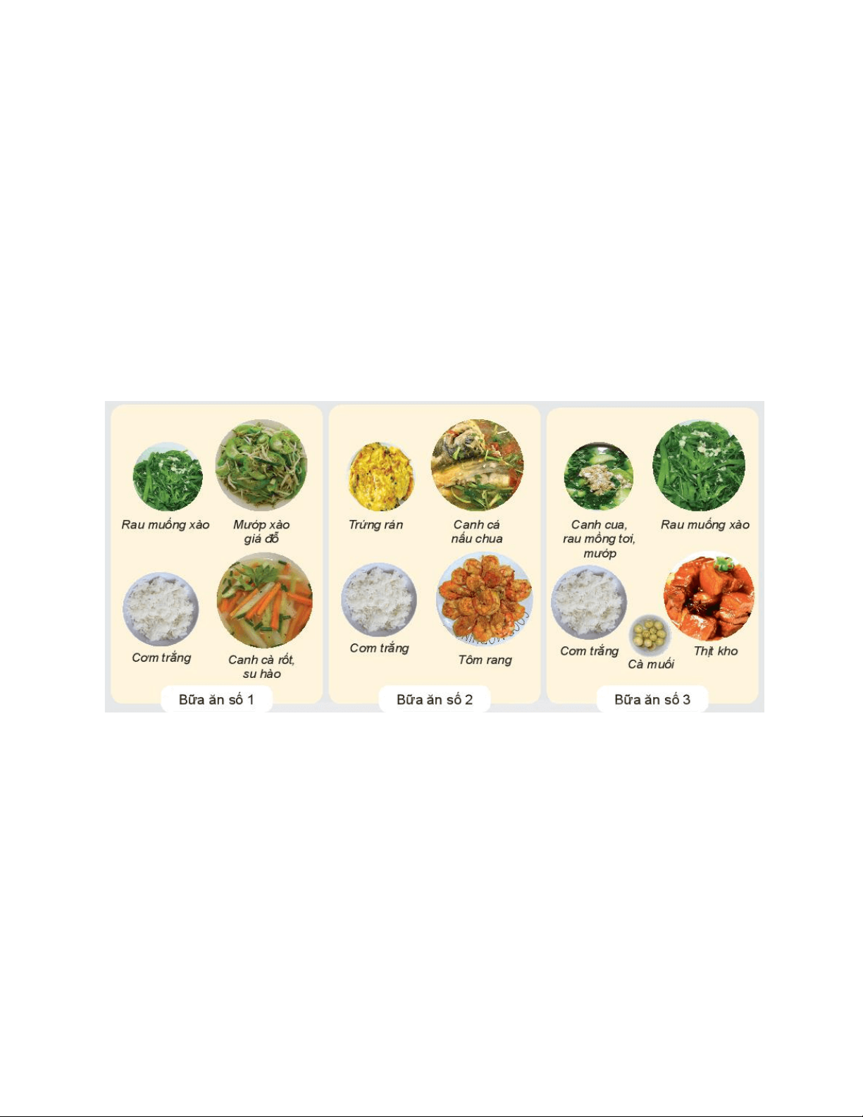 Câu 26. Hãy cho biết, bữa ăn nào sau đây hợp lí nhất? A. Bữa ăn số 1 B. Bữa ăn số 2 C. Bữa ăn số 3