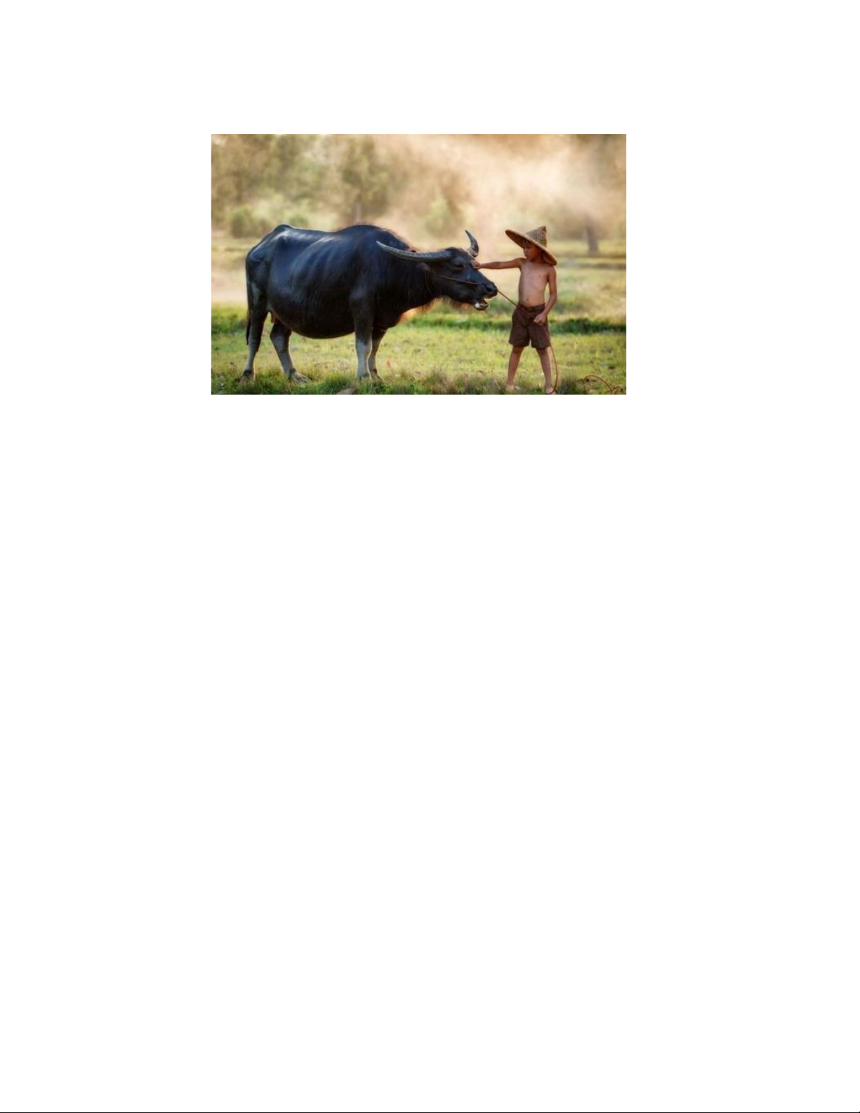 Sáng sớm, các bác nông dân đã dắt trâu đi cày.