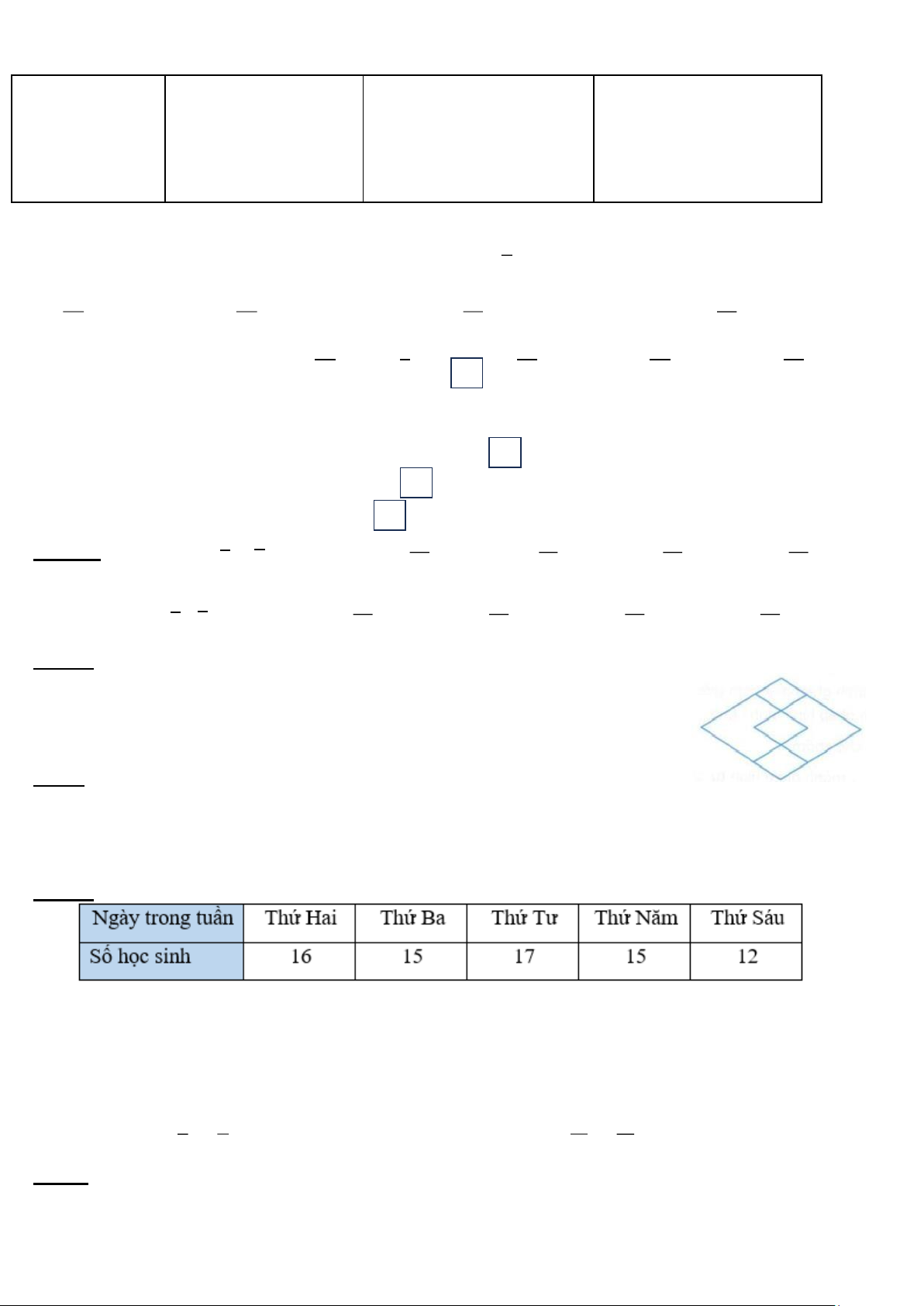 a. 16 b. Thứ Tư c. Thứ Sáu d. Thứ Ba, Thứ Năm Mỗi ý đúng đc 0,25 6 điểm 15 17 7