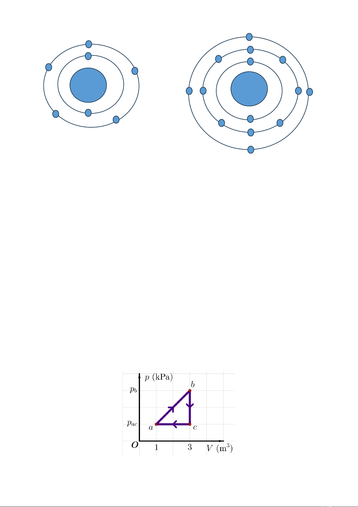 Câu 1: Một mẫu khí lí tưởng thực hiện quá trình (a) – (b) – (c) – (a) được mô tả trên hệ (p - V) như hình.