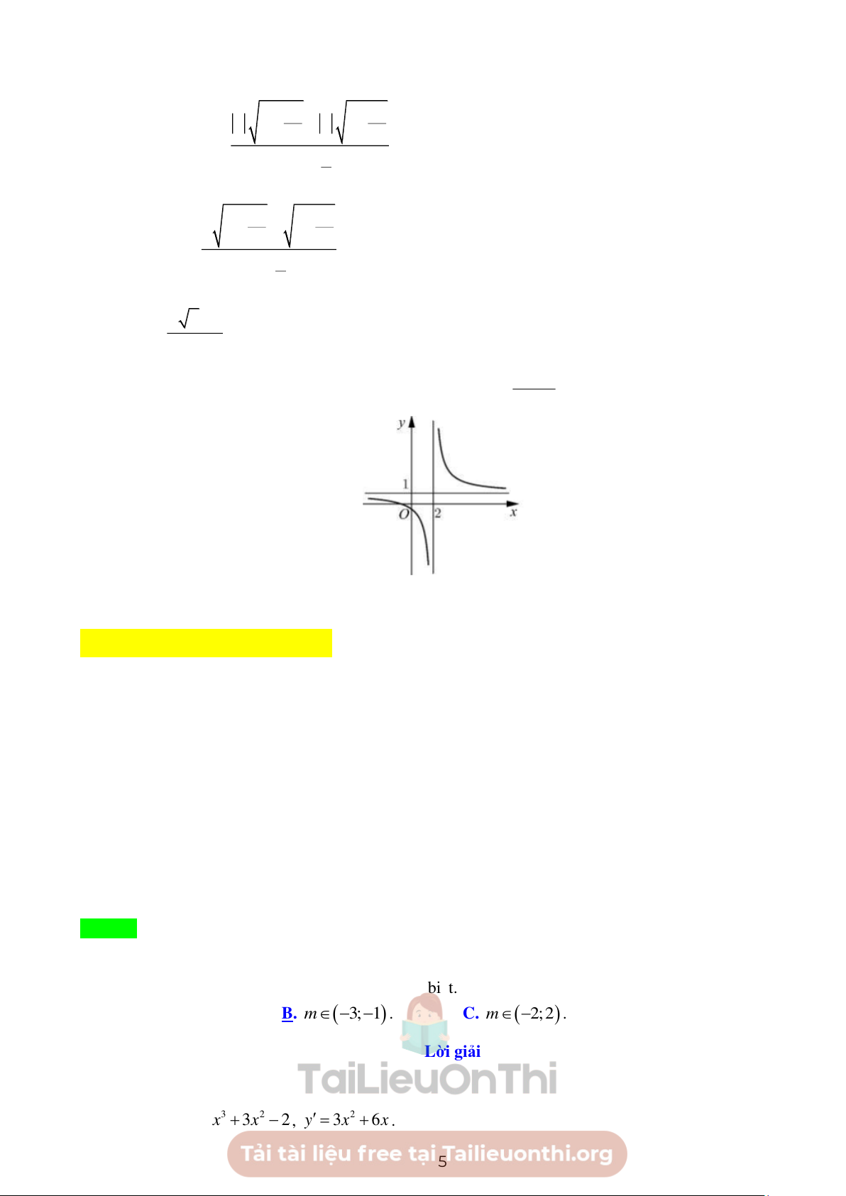 Câu 2. Cho hàm số y = f ( x) có đồ thị đạo hàm y = f ( x) như Hình 1. Hàm số y = f (x) nghịch biến trên khoảng A. ( 2 − ;0) . B. (1; 2) . C. (1; ) 3 . D. (4;5) . Lời giải