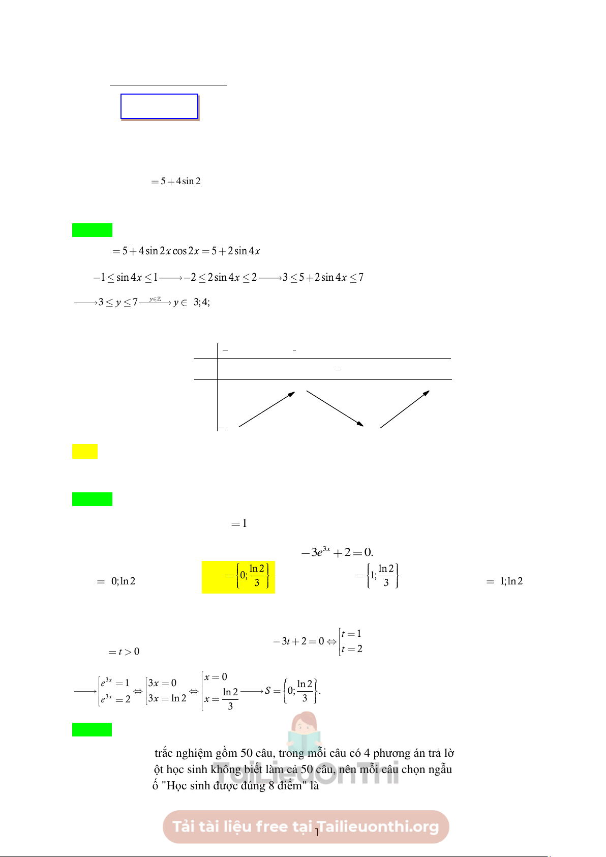 0 . Phương trình trở thành . 3x x 0 e 1 3x 0 ln 2 ln 2 S 0; . 3x e 2 3x ln 2 x 3 3 Chọn B