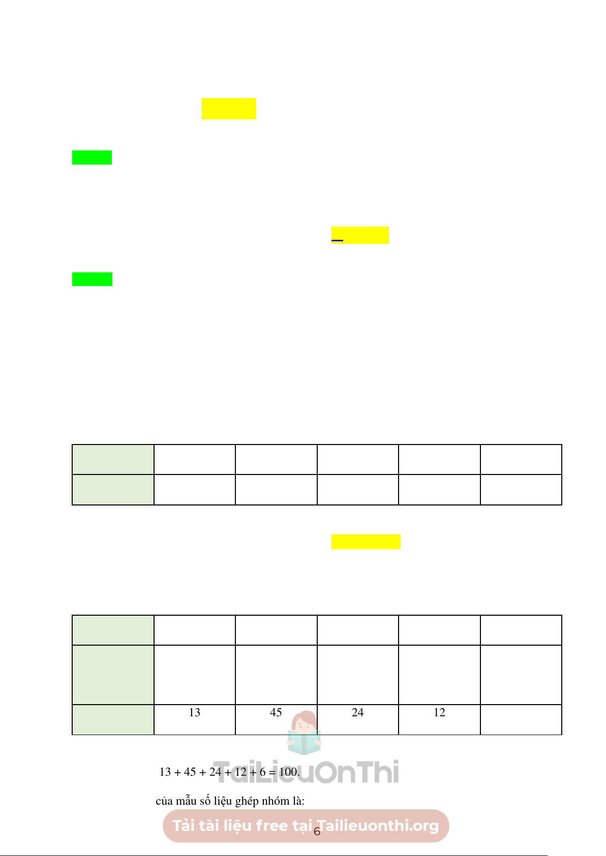 Cỡ mẫu là n = 13 + 45 + 24 + 12 + 6 = 100.