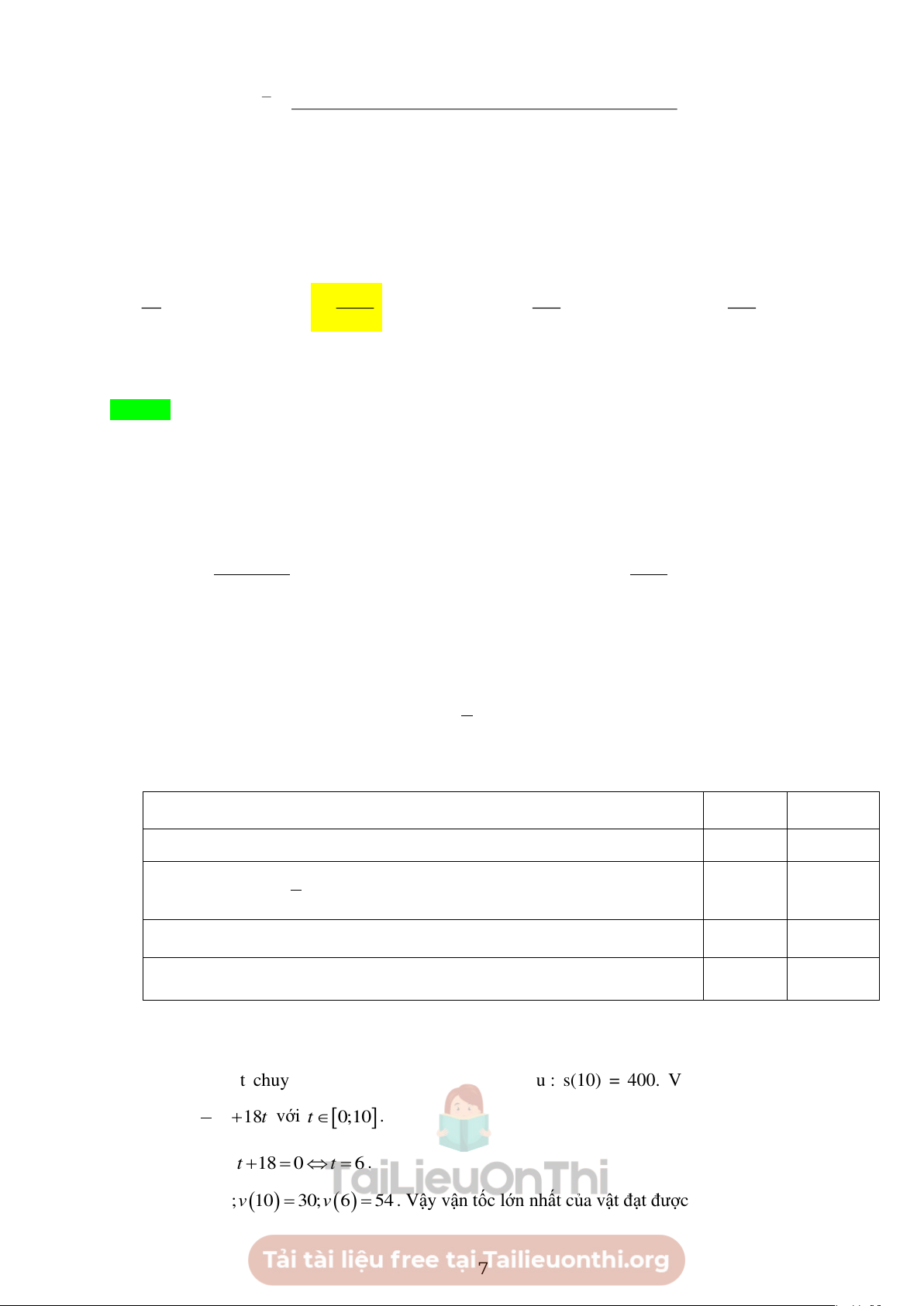 4t m / s ). Quãng đường chất điểm đó đi được trong khoảng thời gian 3 giây kể từ lúc bắt đầu tăng vận tốc là A. 67, 25 m . B. 68, 25 m. C. 69, 75 m. D. 70, 25 m . Đáp án (t + 4t) 3 t dt = + 2t + C v(t) 3 t 2 2 2 = + 2t + C . 3 3