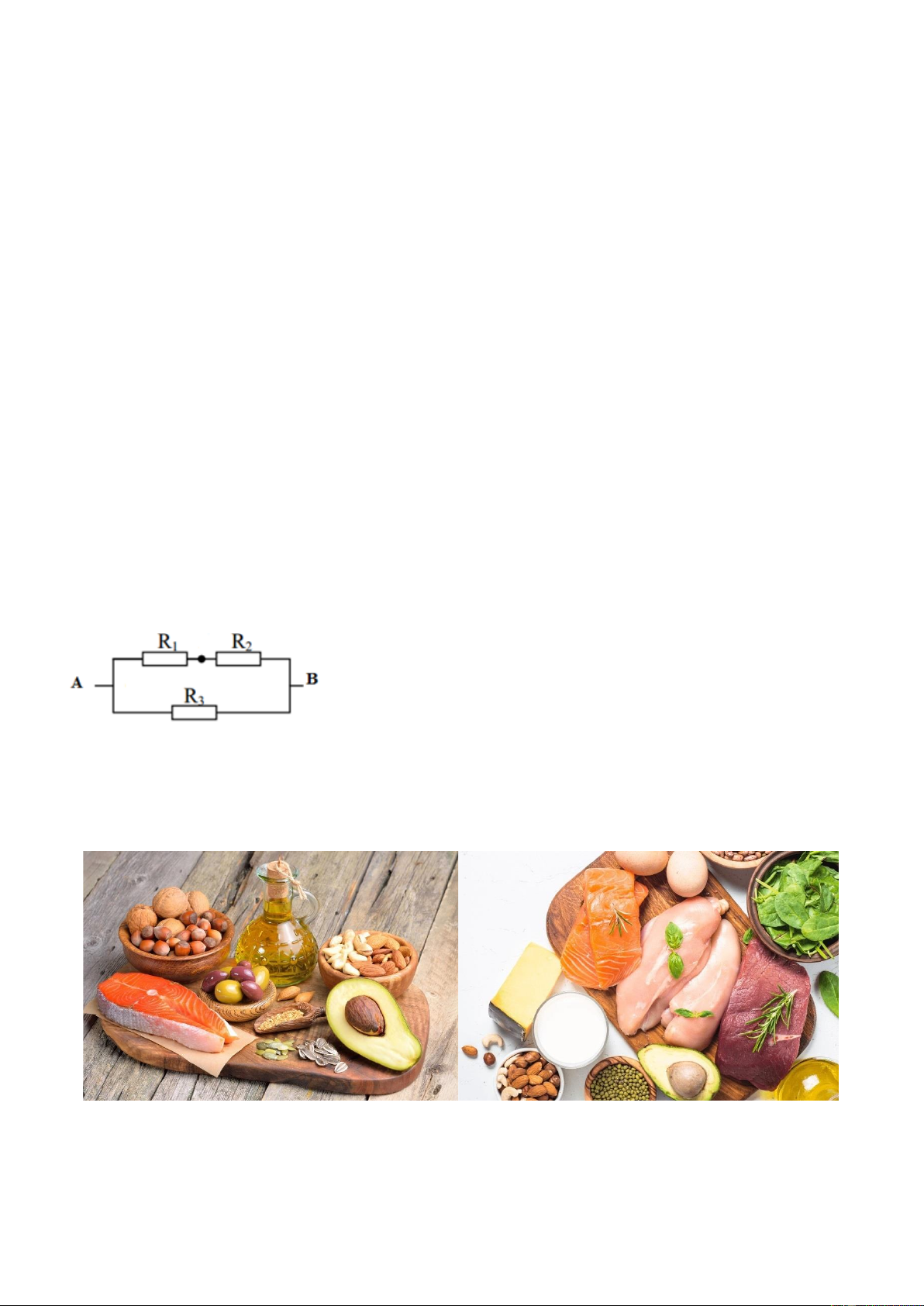 Câu 21 (0,5 điểm): Cho mạch điện như hình vẽ. Biết R1 = 4 Ω; R2 = 6 Ω; R3 = 10 Ω. Đặt